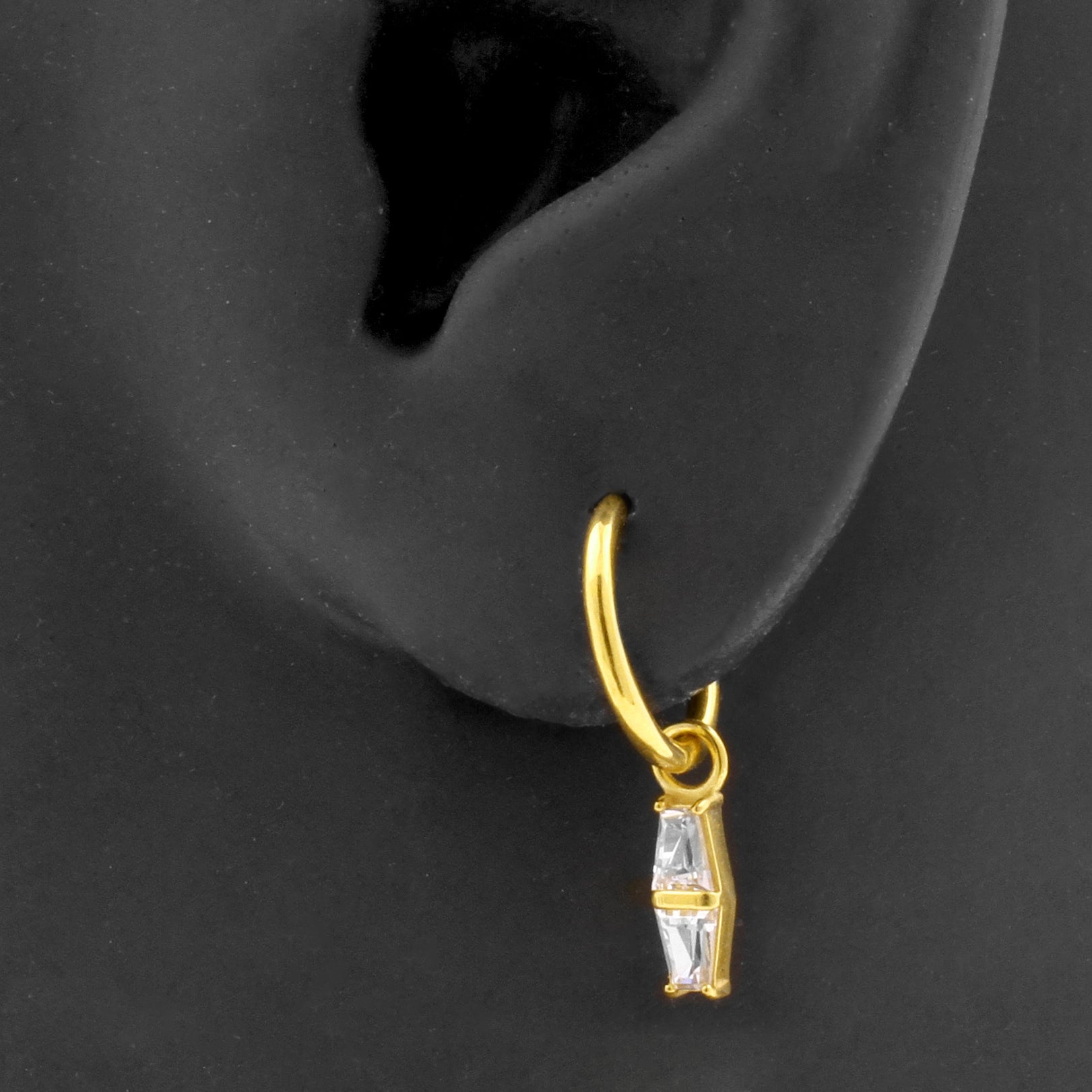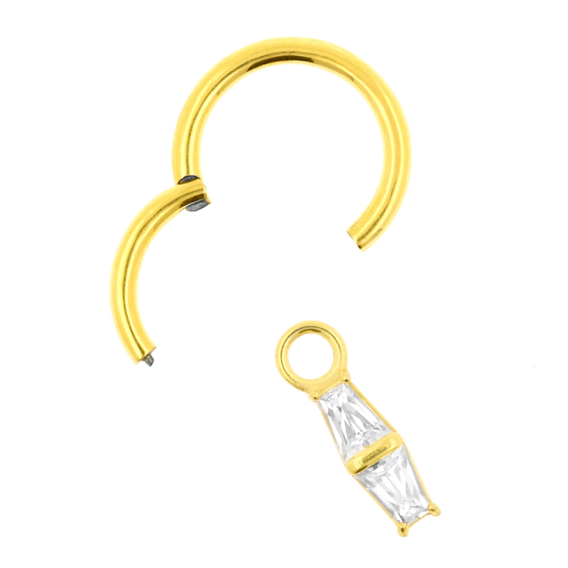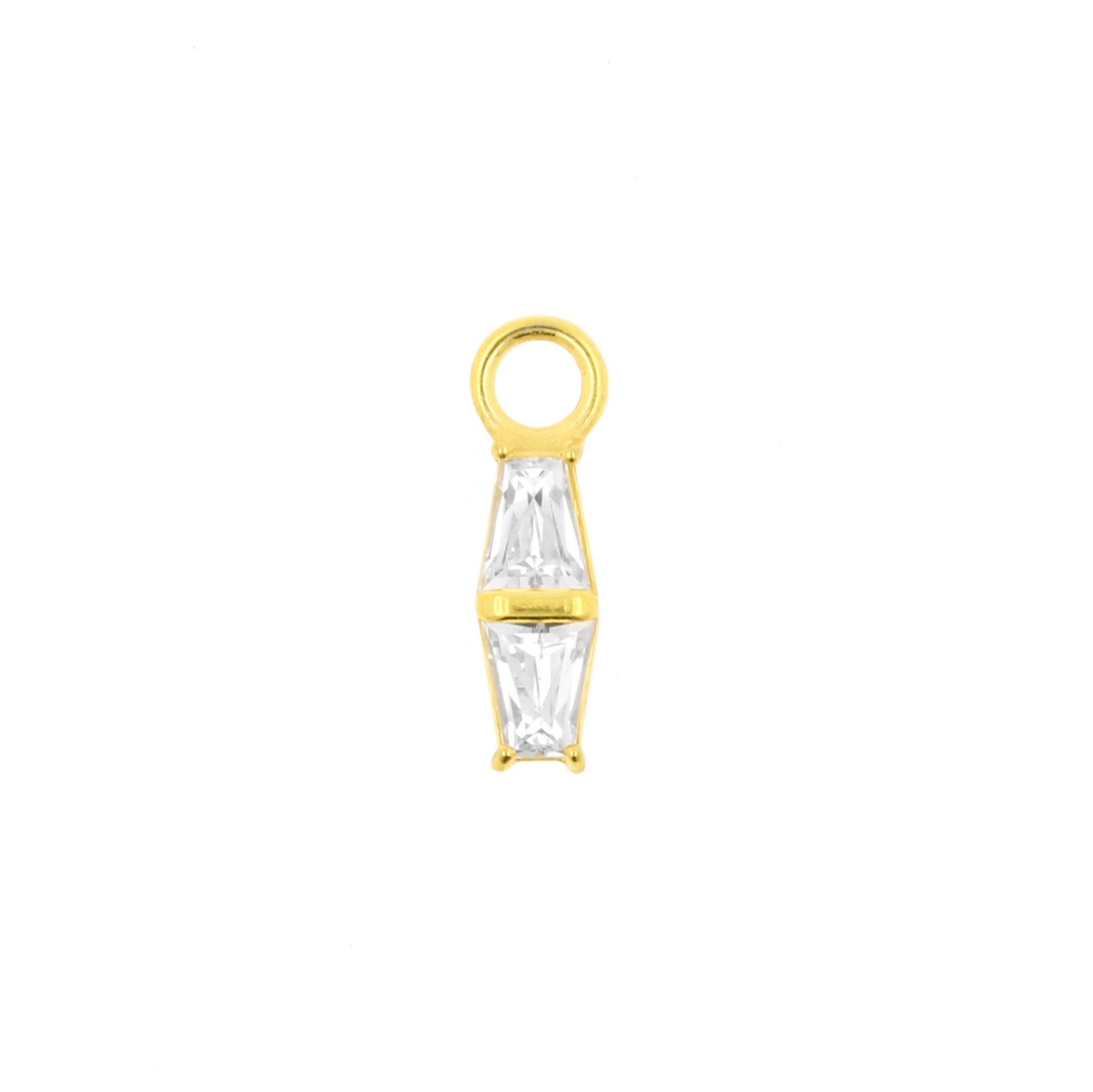 Nickel-Free Stainless Steel Click Ring Charm - Zirconia Double Trapezoid Gold