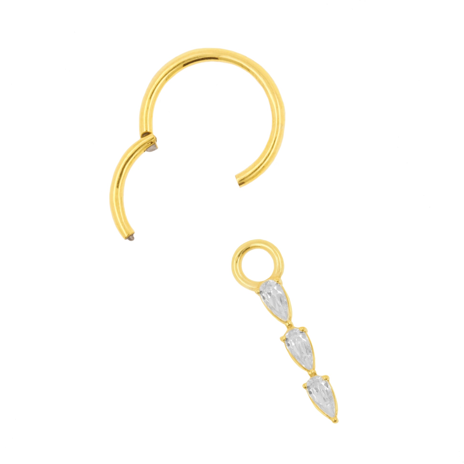 Nickel-Free Stainless Steel Click Ring Charm - Zirconia Drops - Gold