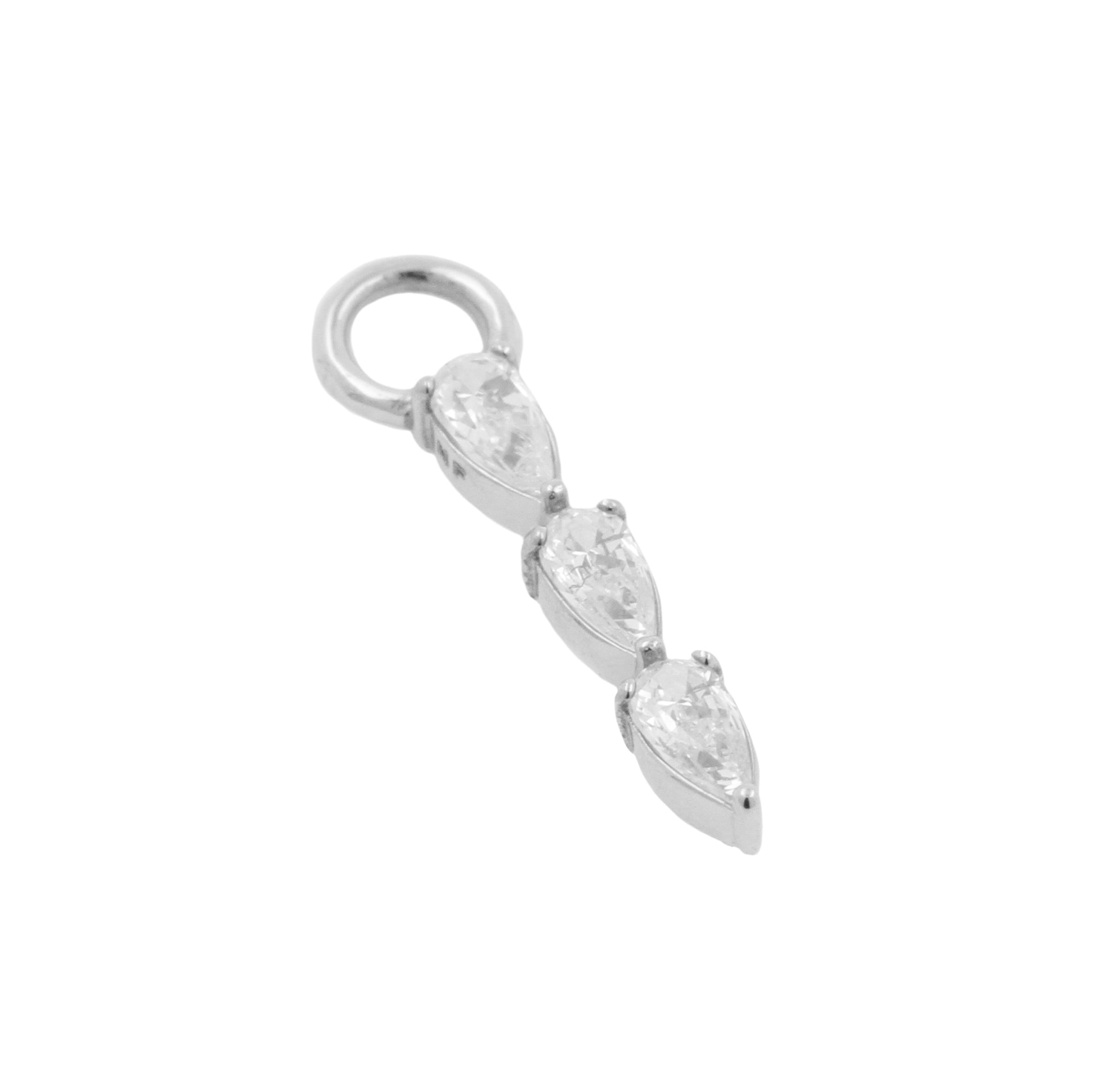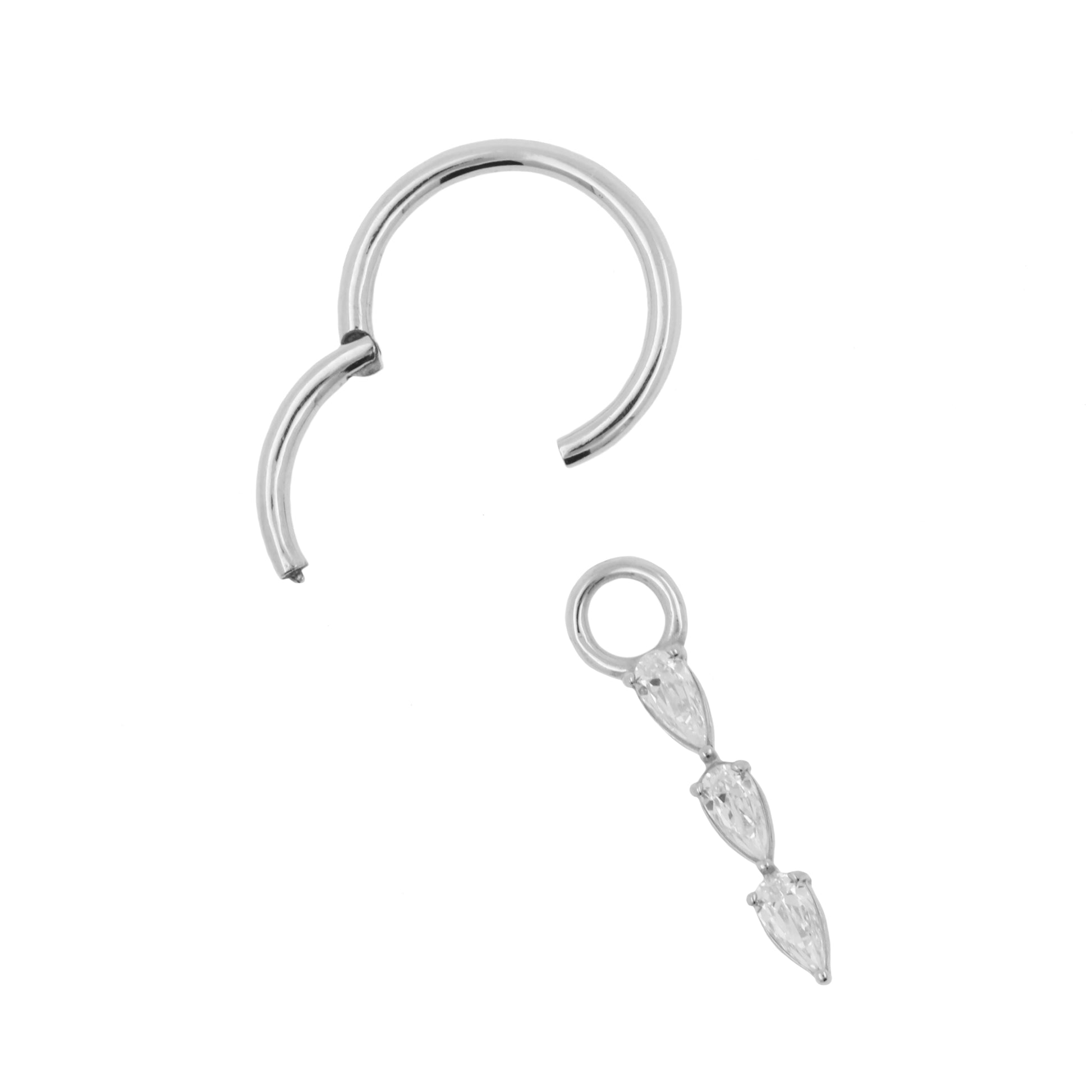 Nickel-Free Stainless Steel Click Ring Charm - Zirconia Drops - Silver
