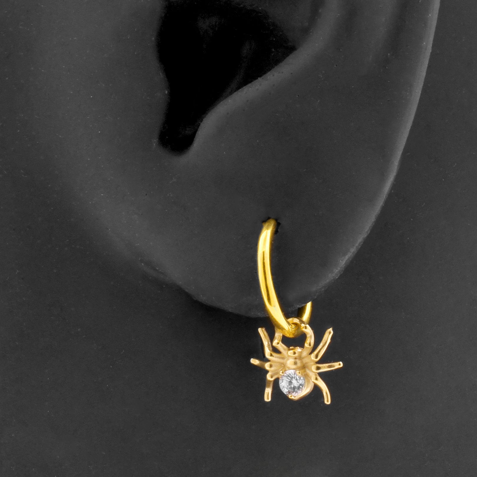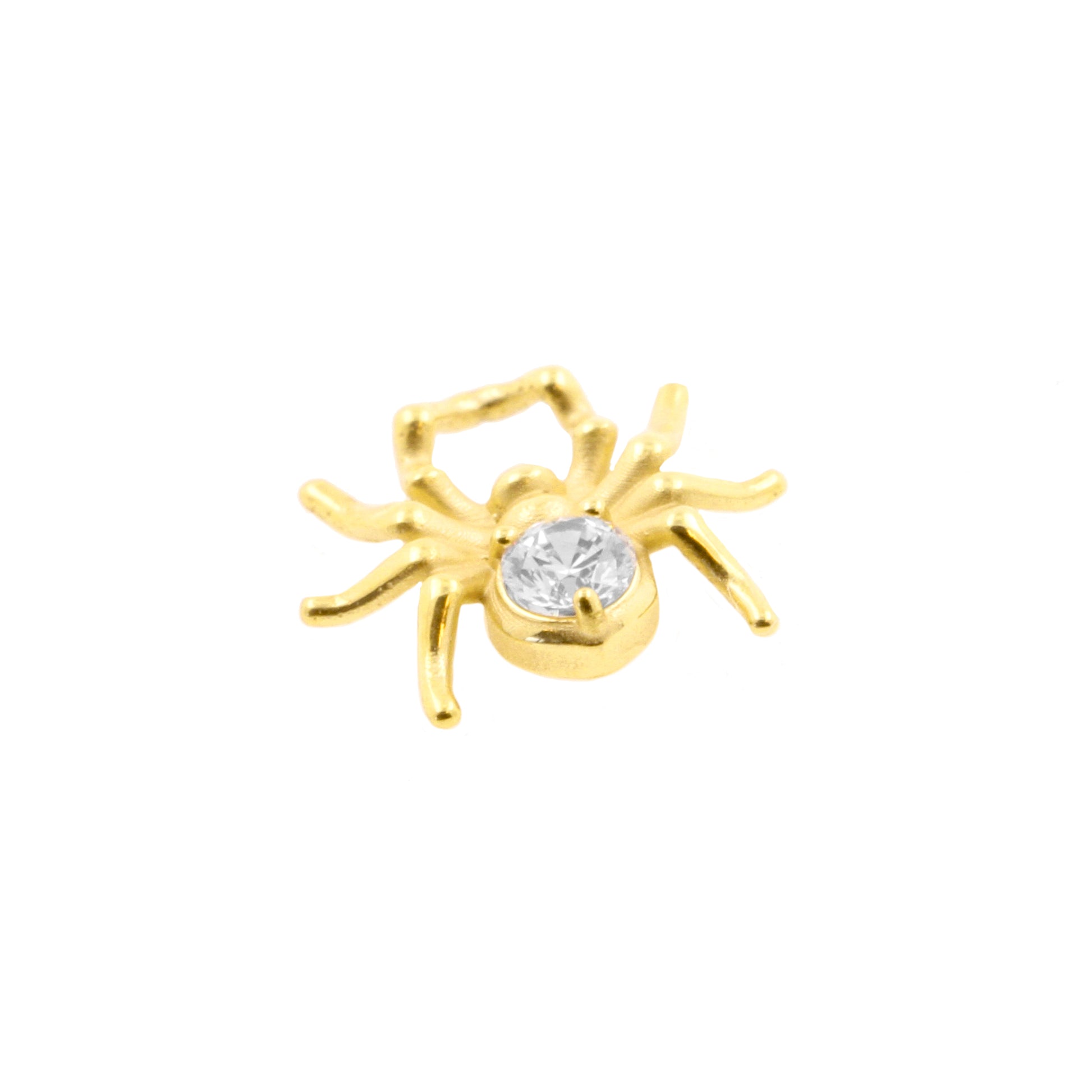 Nickel-Free Stainless Steel Click Ring Charm - Zirconia Spider Gold