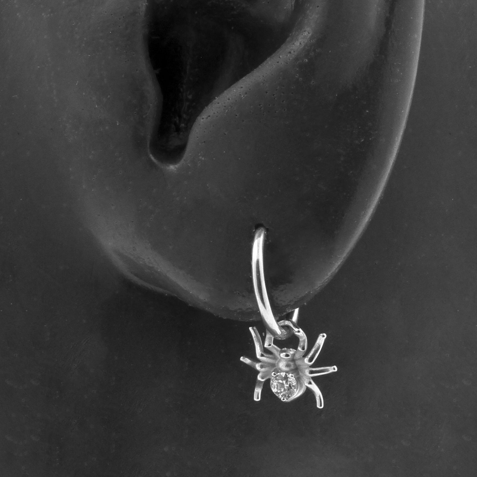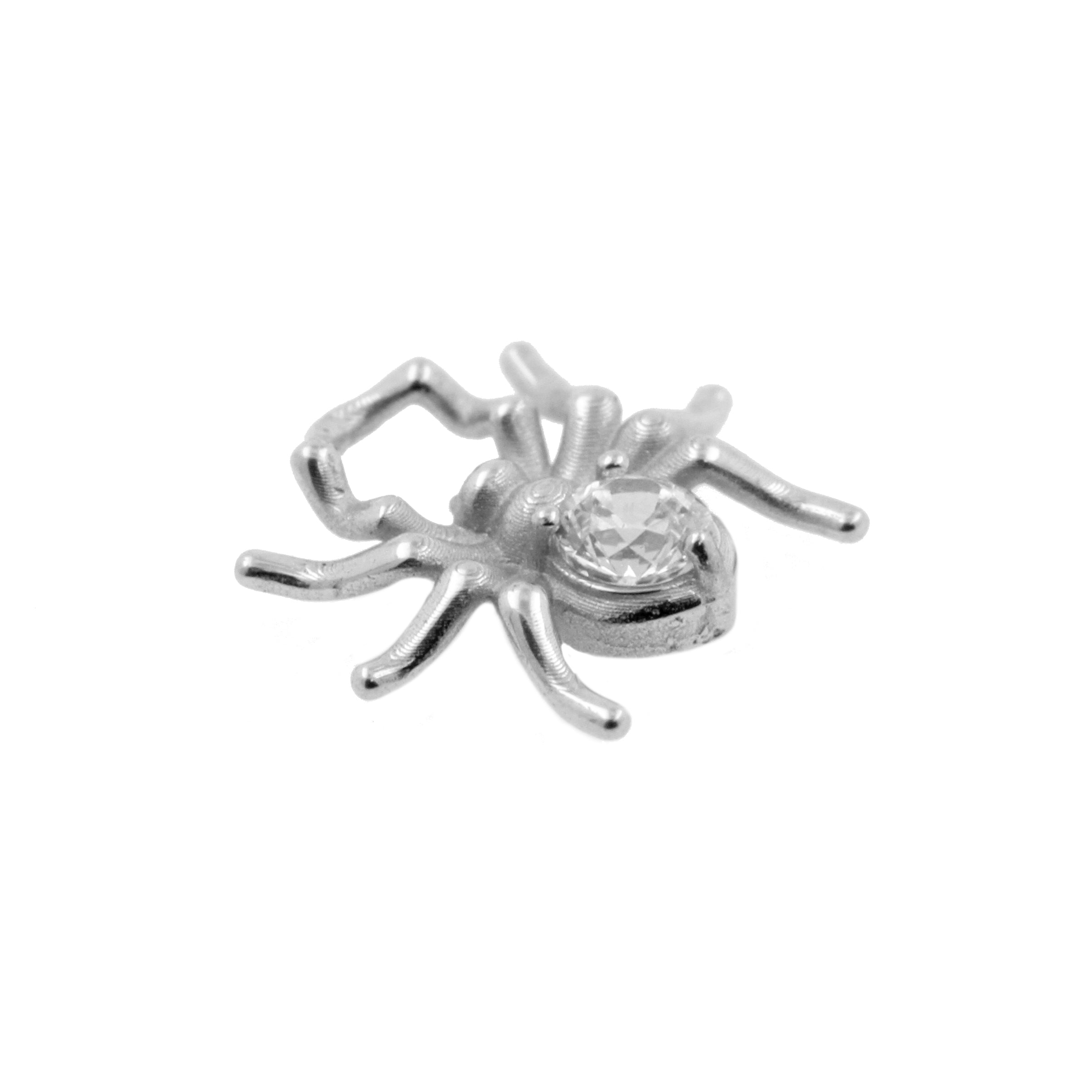 Nickel-Free Stainless Steel Click Ring Charm - Zirconia Spider Silver