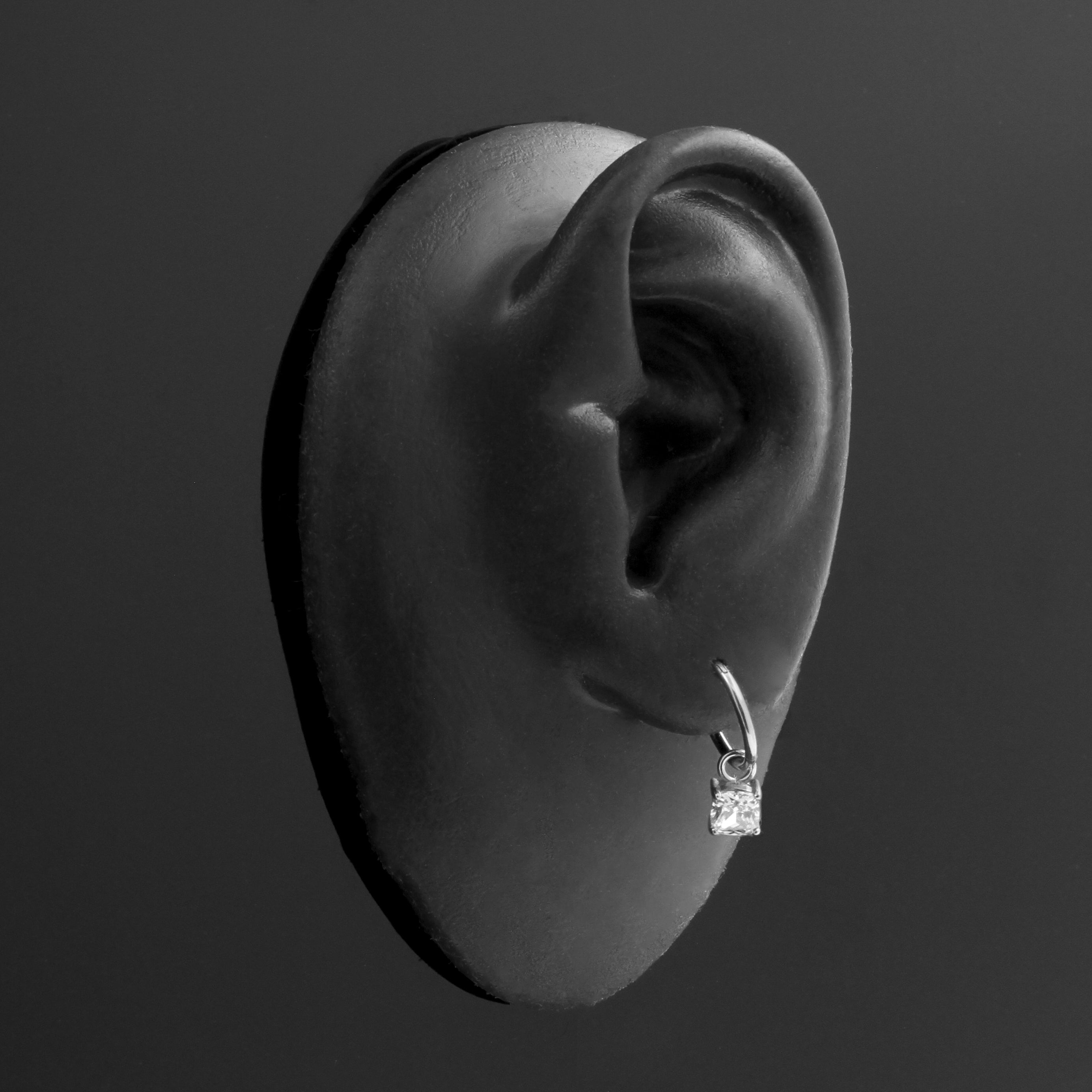Nickel-Free Stainless Steel Click Ring Charm - Zirconia Square Silver