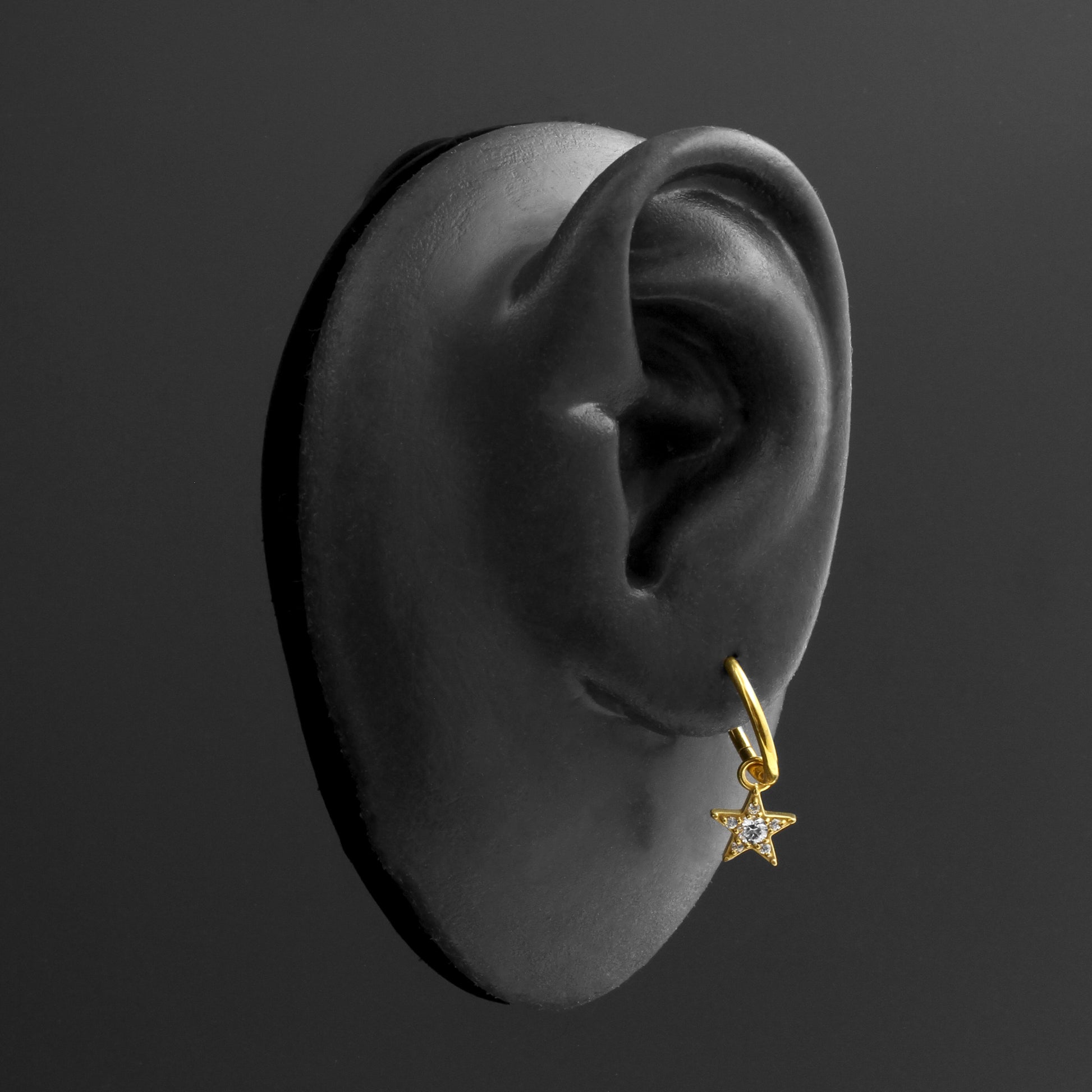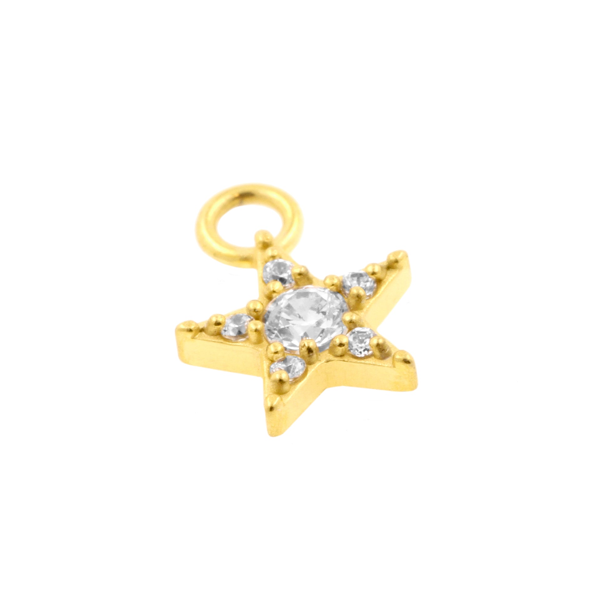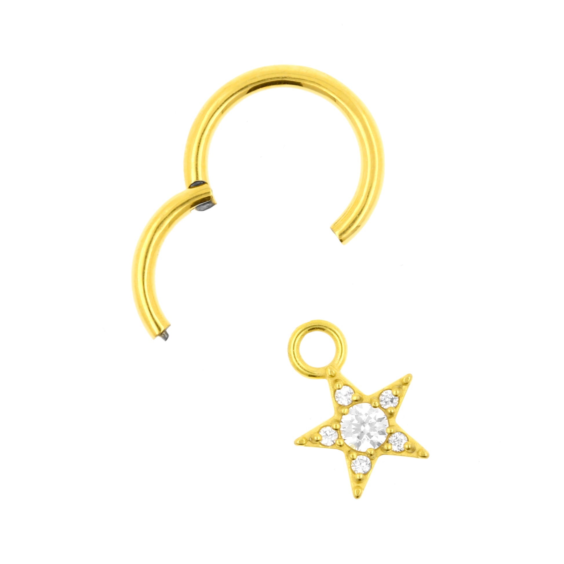 Nickel-Free Stainless Steel Click Ring Charm - Zirconia Star Gold