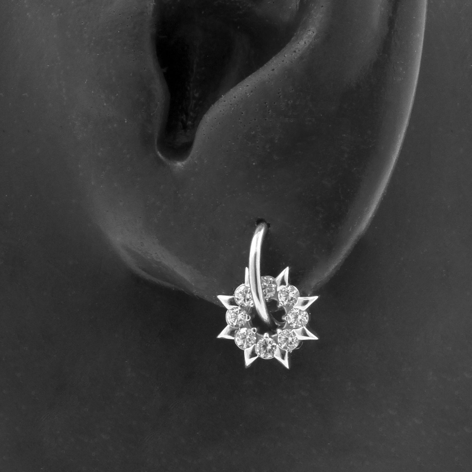 Nickel-Free Stainless Steel Click Ring Charm - Zirconia Wheel Silver