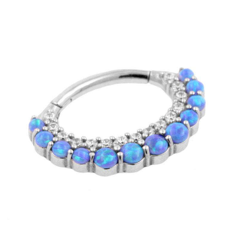 Nickel-Free Stainless Steel Daith Clicker - Opal And Zirconia Blue Opal