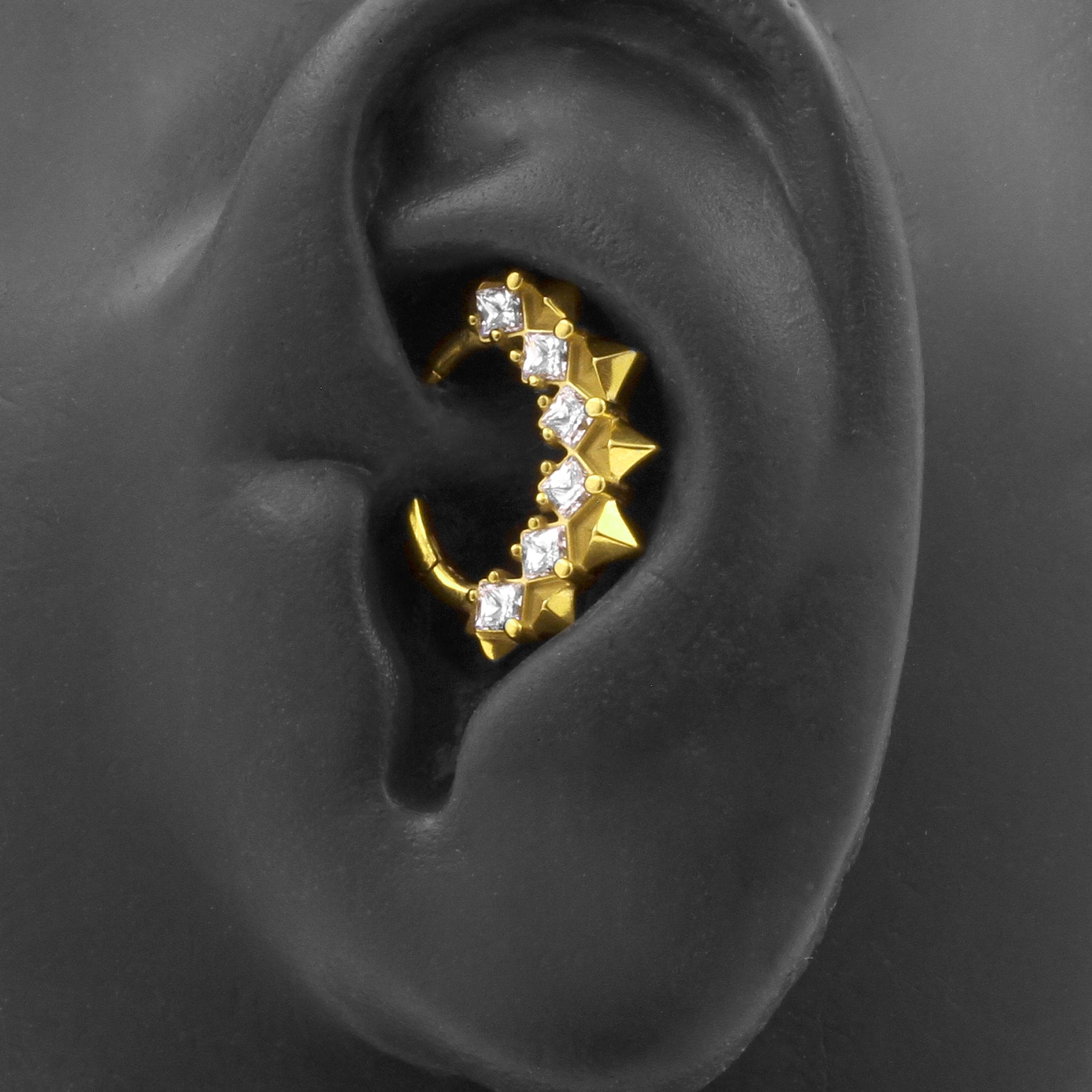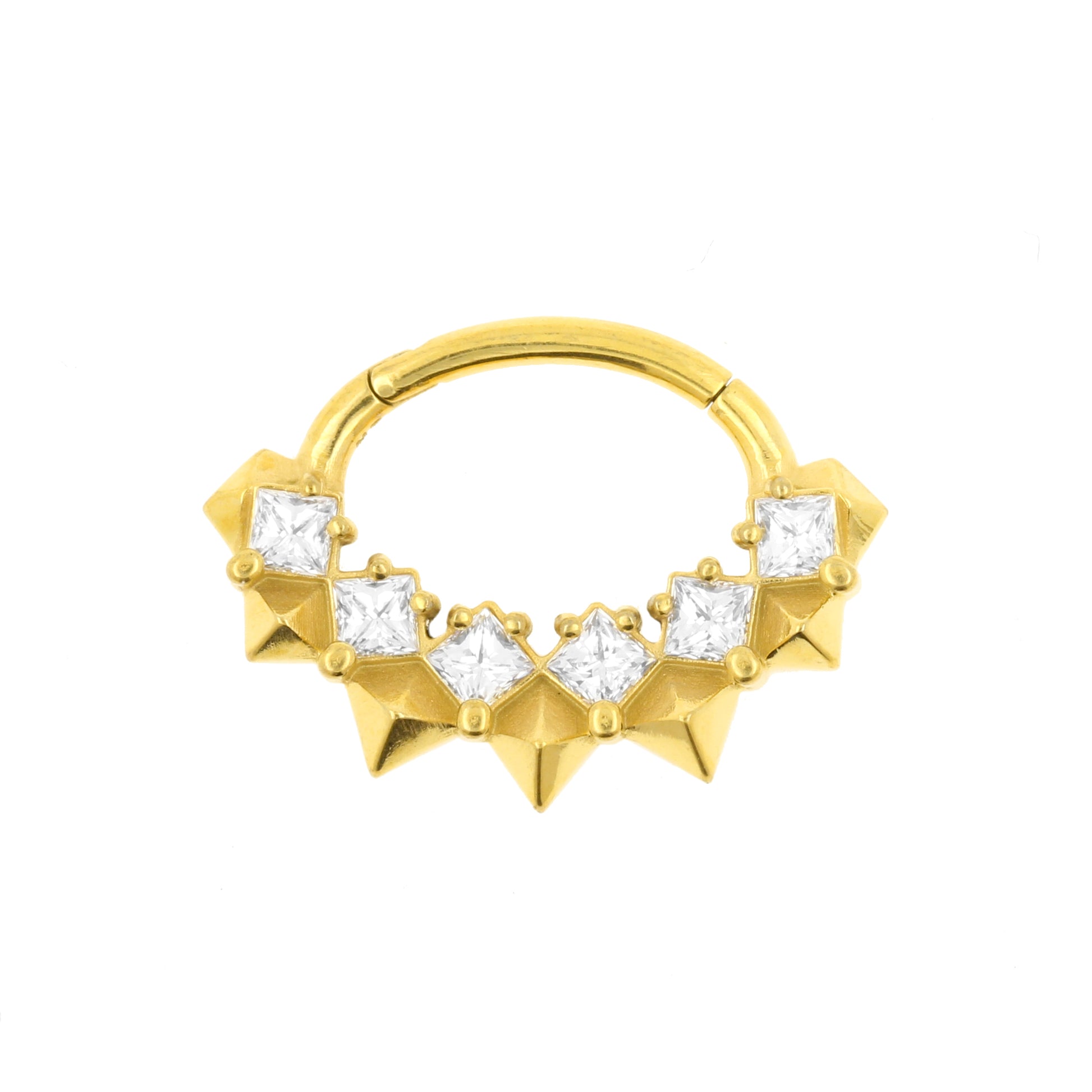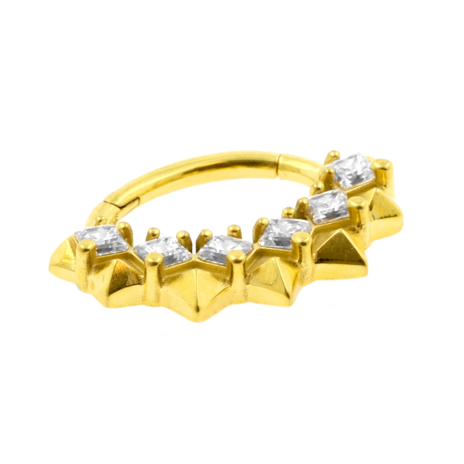 Nickel-Free Stainless Steel Daith Clicker - Zirconia Square Studs Gold