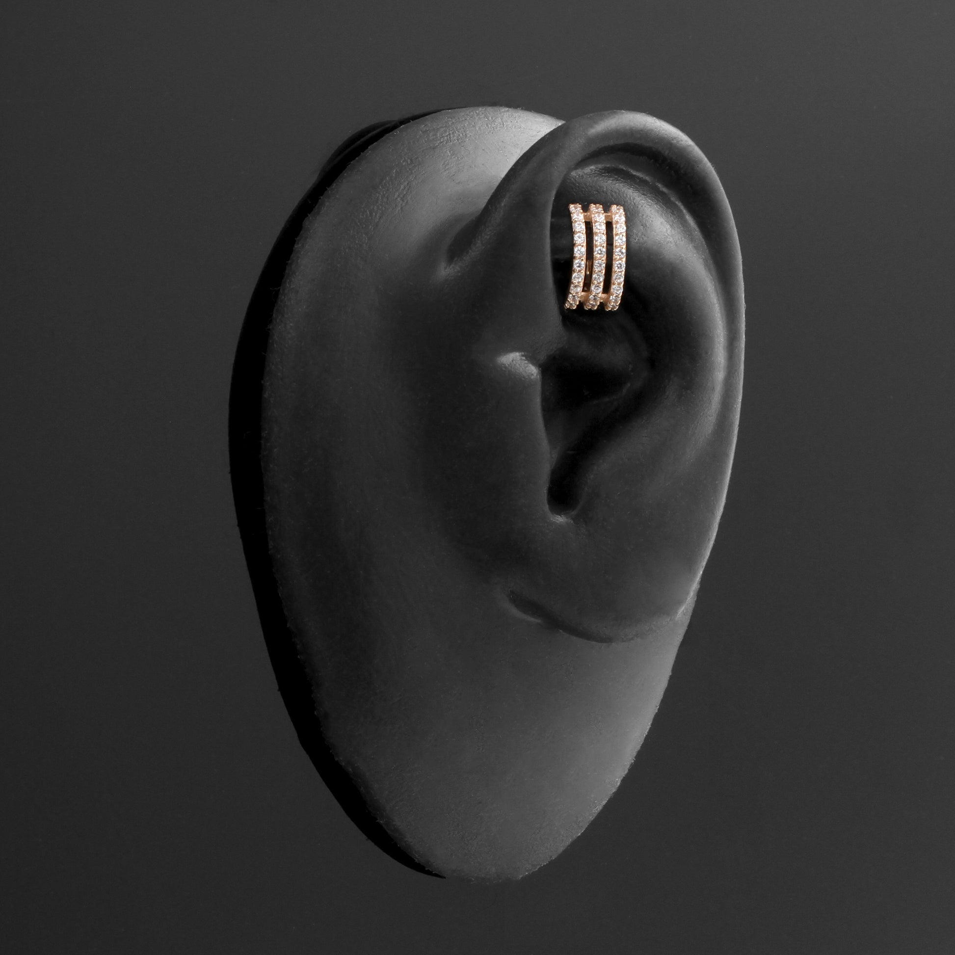 Nickel-Free Stainless Steel Rook Clicker - Triple Ring Rose Gold