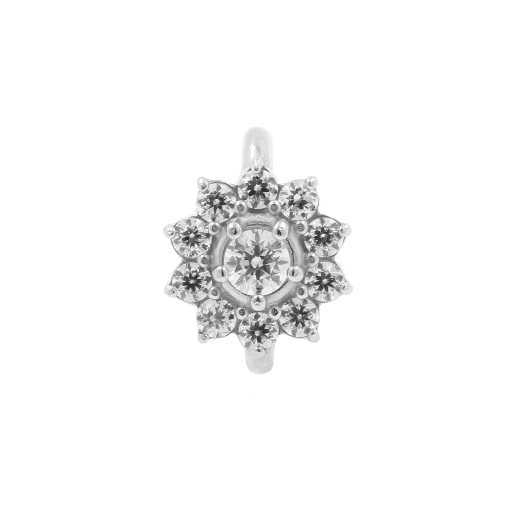 Nickel-Free Stainless Steel Rook Clicker - Zirconia Flower Clear / Clear