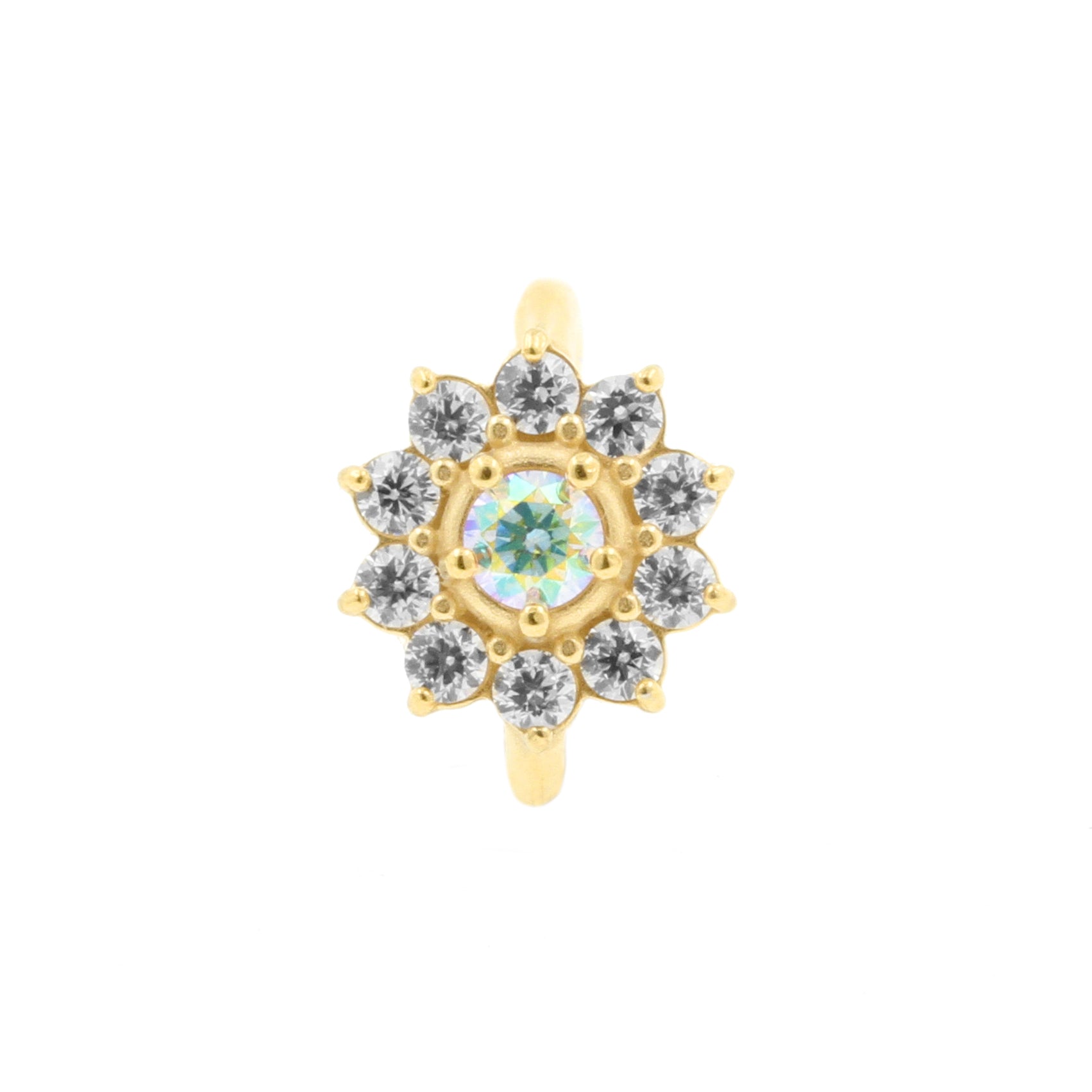 Nickel-Free Stainless Steel Rook Clicker - Zirconia Flower Crystal AB / Clear