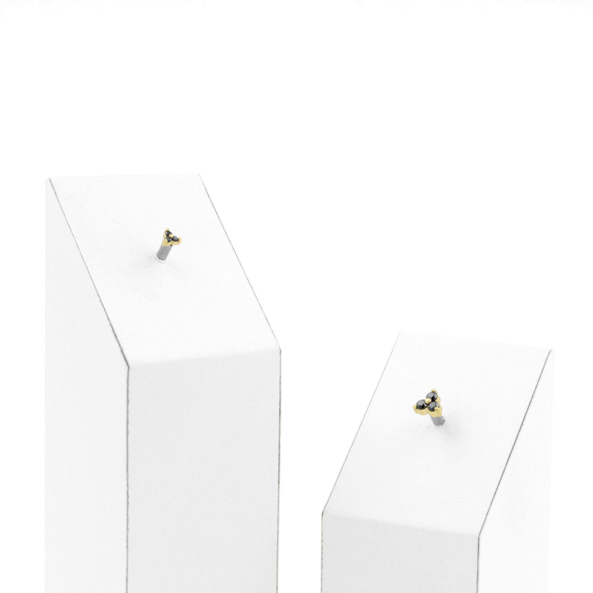 Elegant yet bold. This Trinity Threadless Top by Devilheart brings three black zirconia stones together in a refined triangle setting. The golden finish adds a luxurious touch, while the nickel‑free steel with P.V.D. gold coating preserves color and long‑lasting shine.