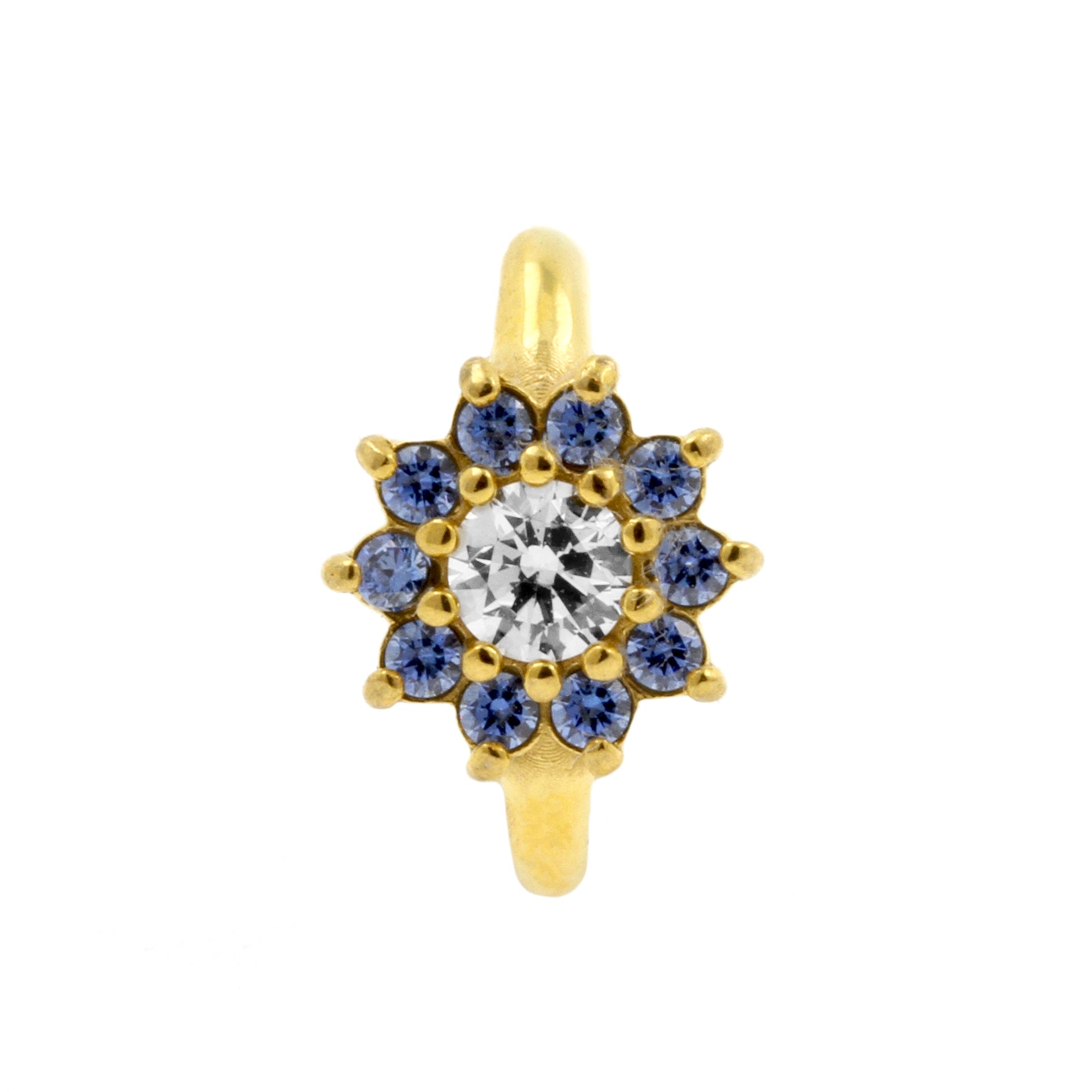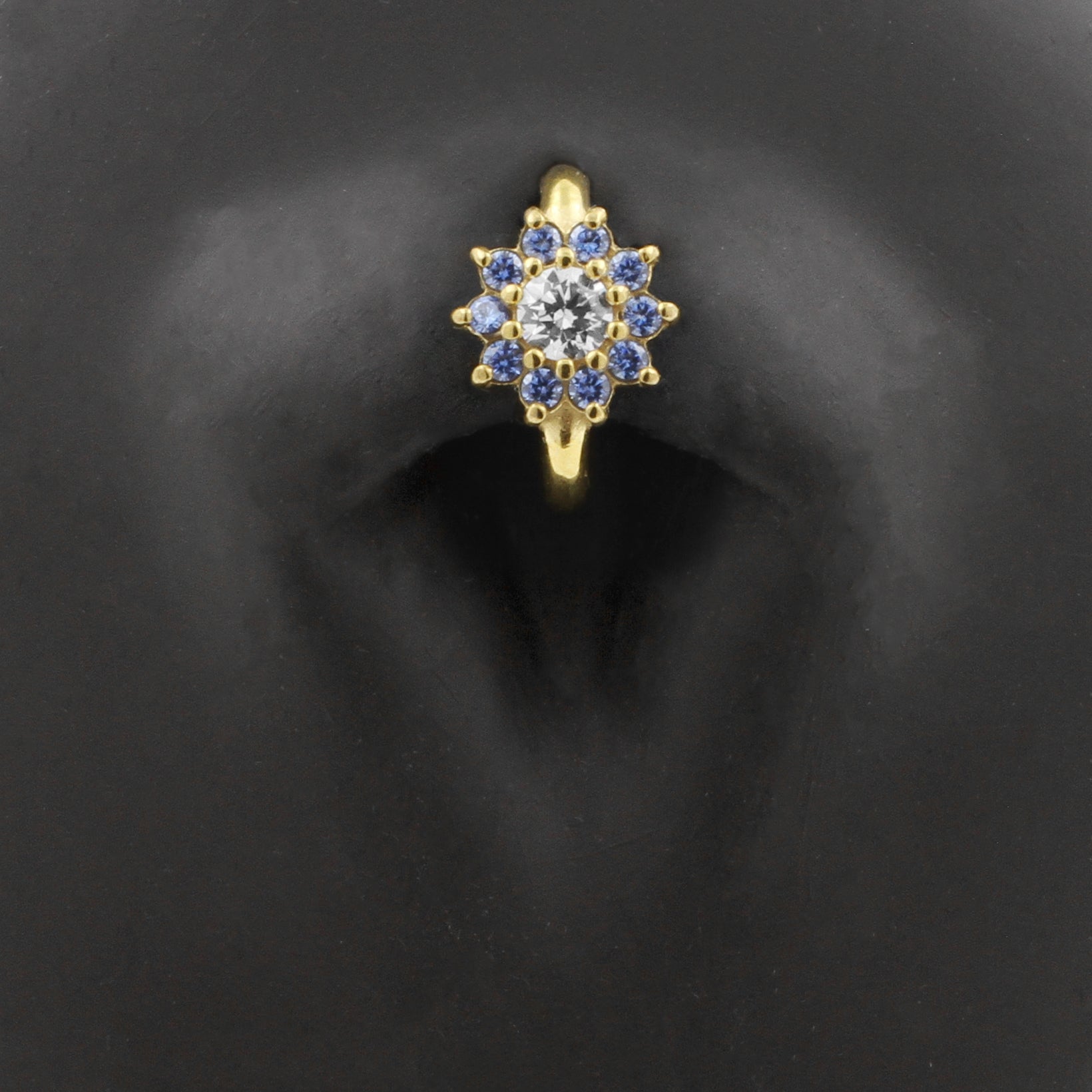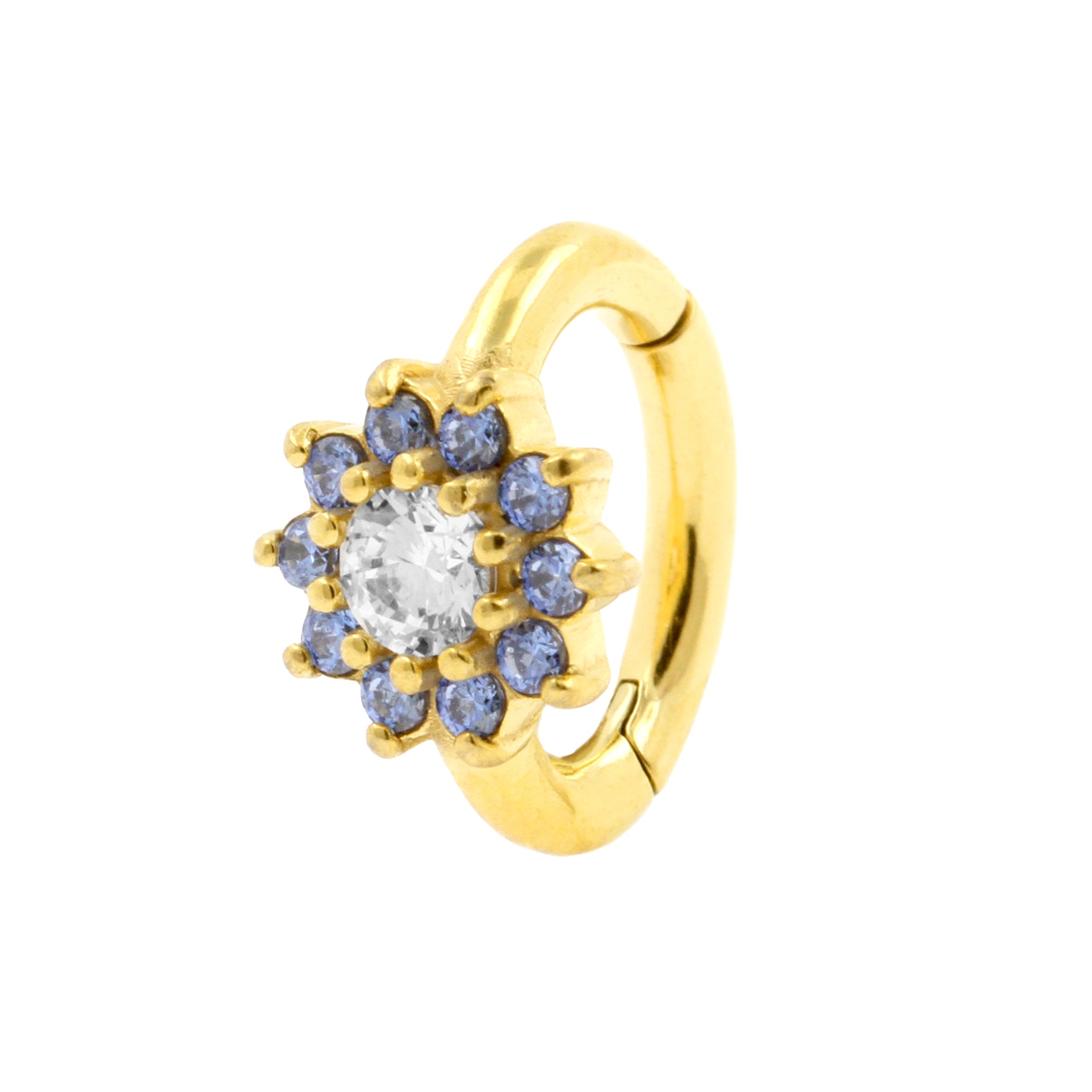 Nickel-Free Stainless Steel Zirconia Belly Ring Clicker - Flower Clear / Blue