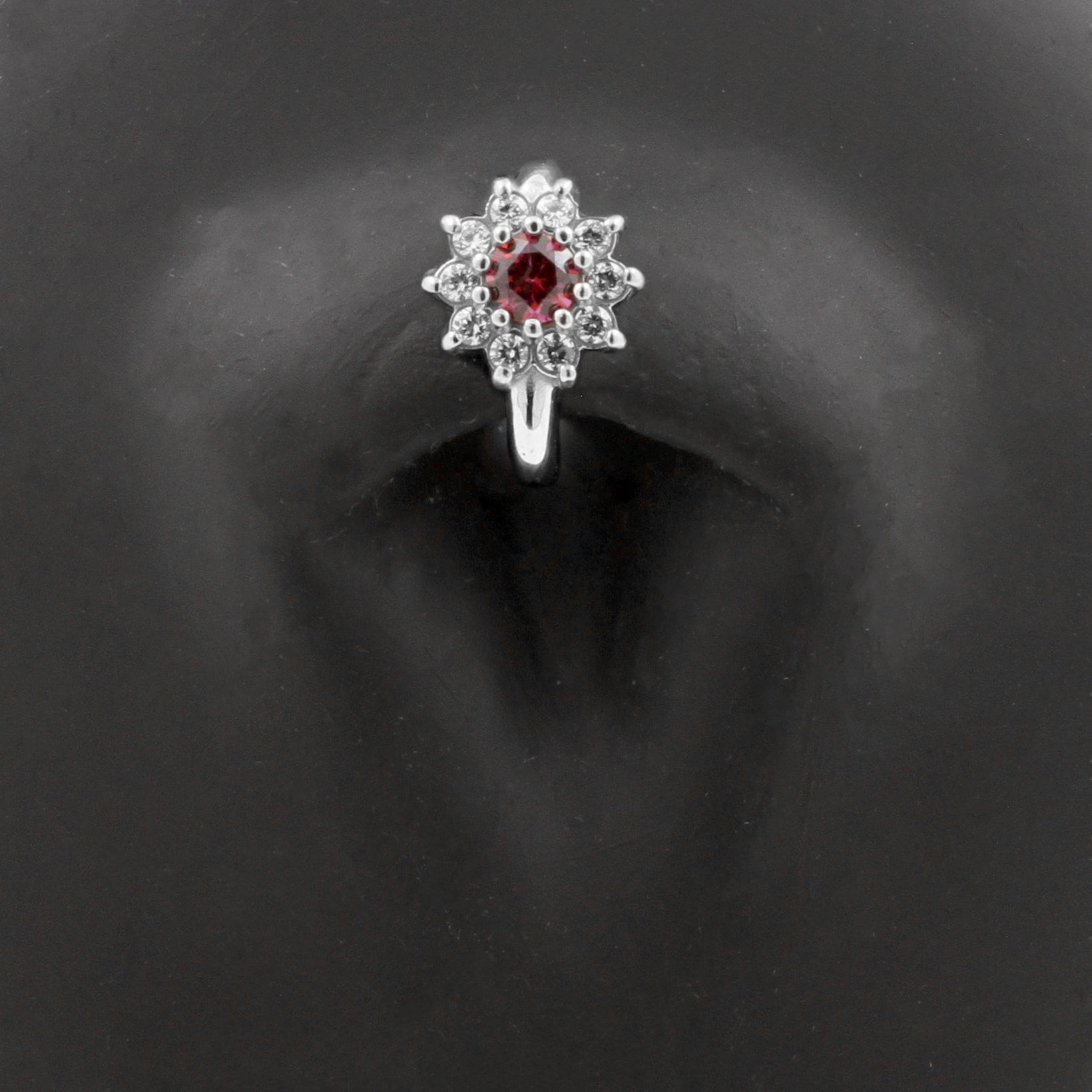 Nickel-Free Stainless Steel Zirconia Belly Ring Clicker - Flower Silver