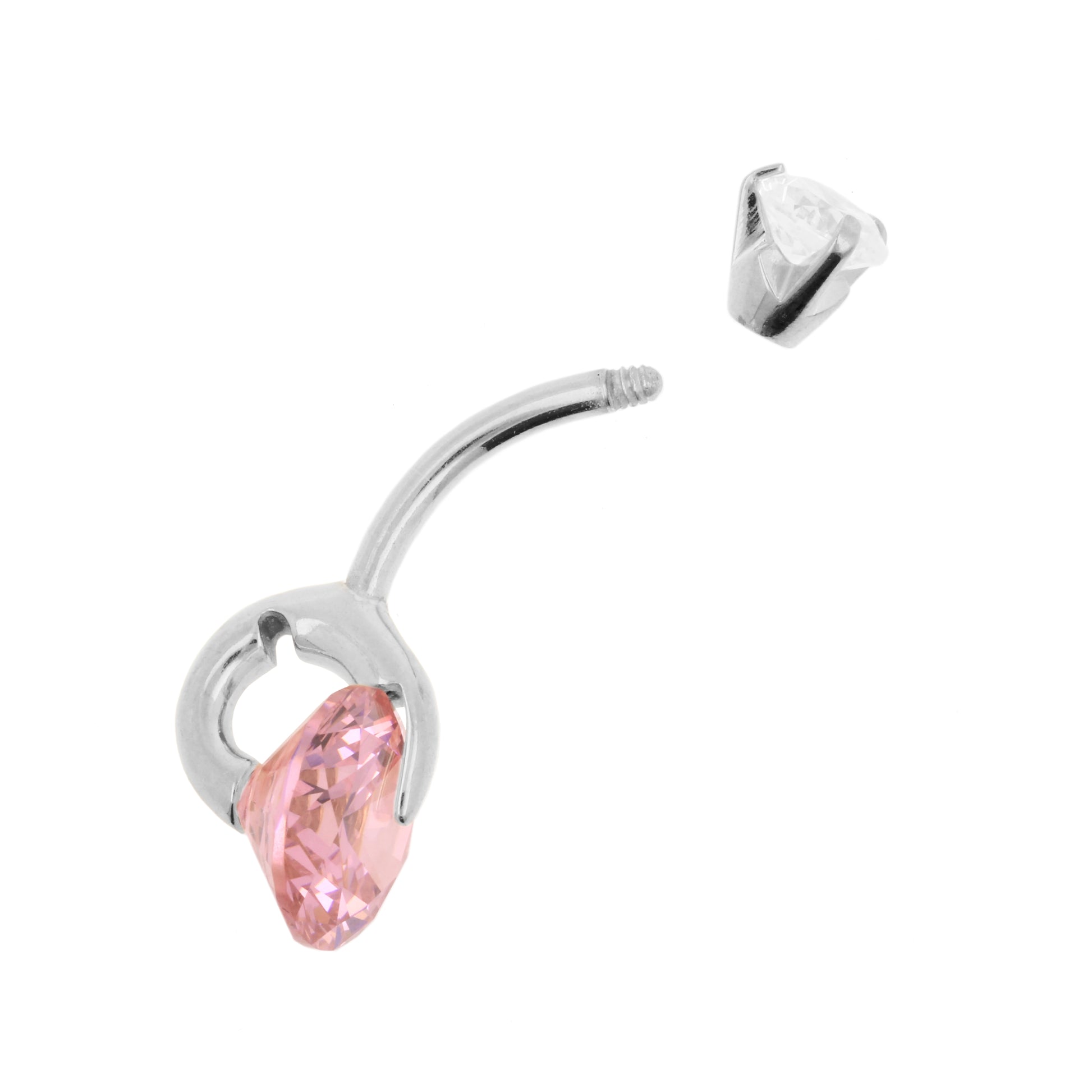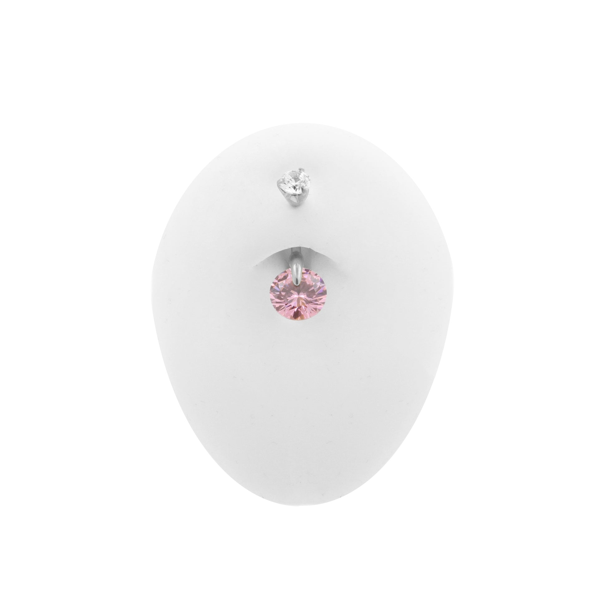 Elegant and refined — this belly bar features a pink cubic zirconia in a floating style for maximum visibility and sparkle. Crafted from premium surgical steel with a smooth, polished finish for long-lasting comfort and a refined look.