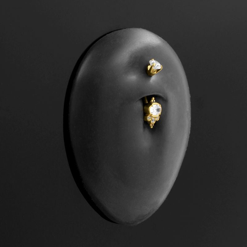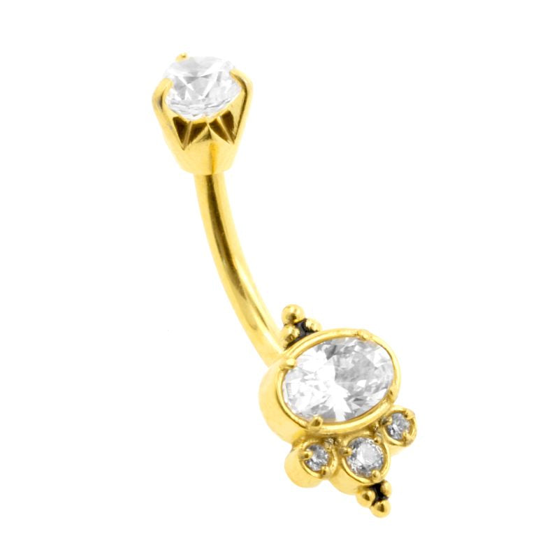 Surgical Steel Belly Ring Zirconia Ellipse Cluster Gold