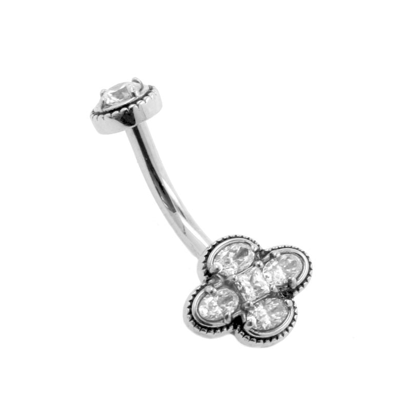 Surgical Steel Belly Ring Zirconia Flower Silver