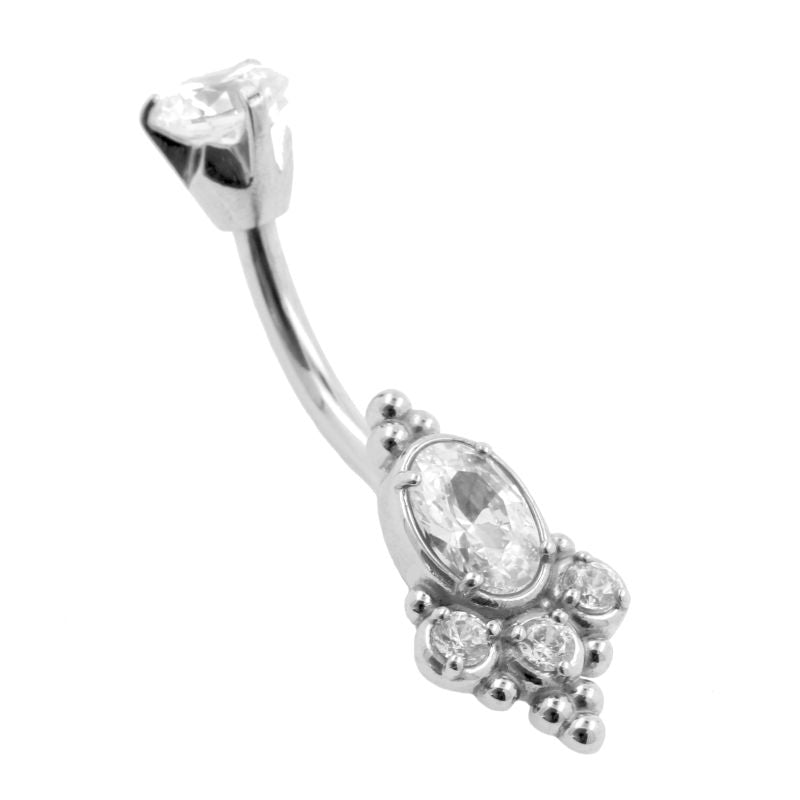 Surgical Steel Belly Ring Zirconia Oval Cluster Silver
