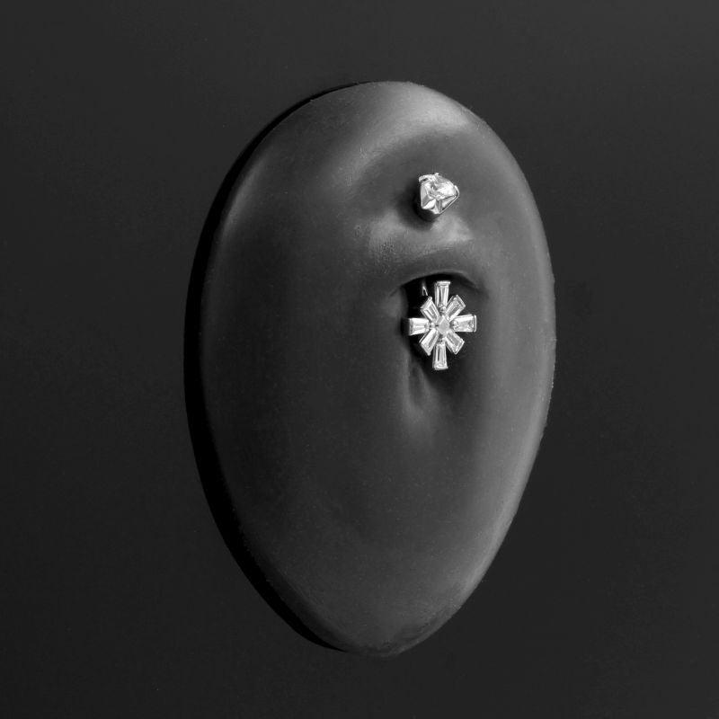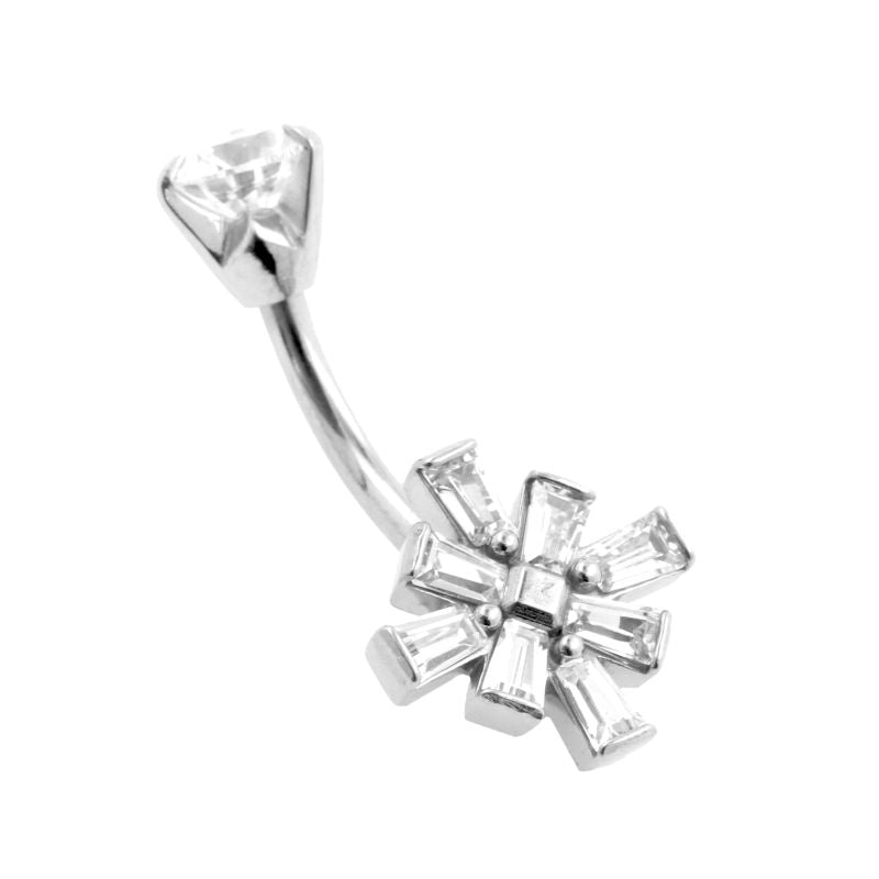 Surgical Steel Belly Ring Zirconia Trapezoid Cluster Silver
