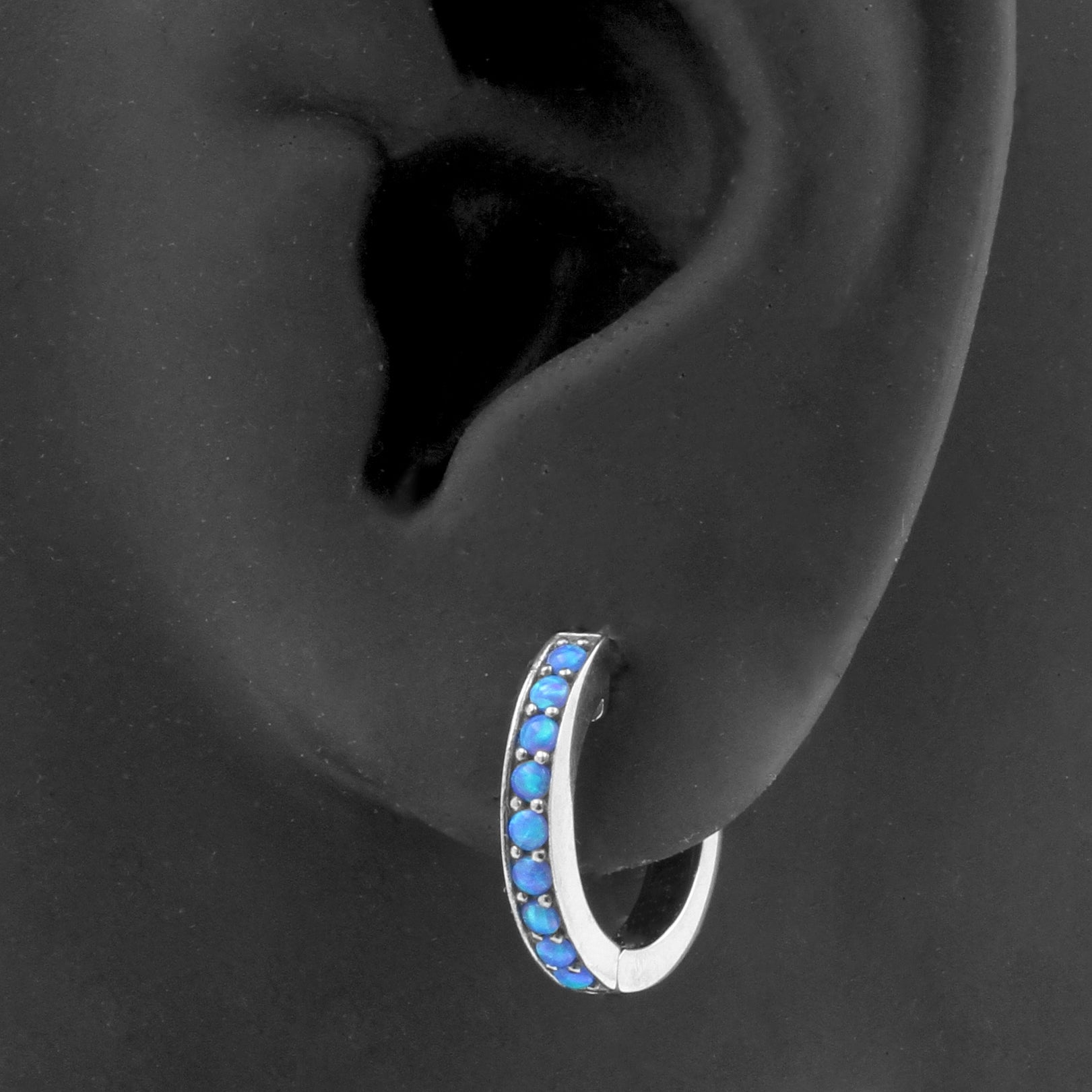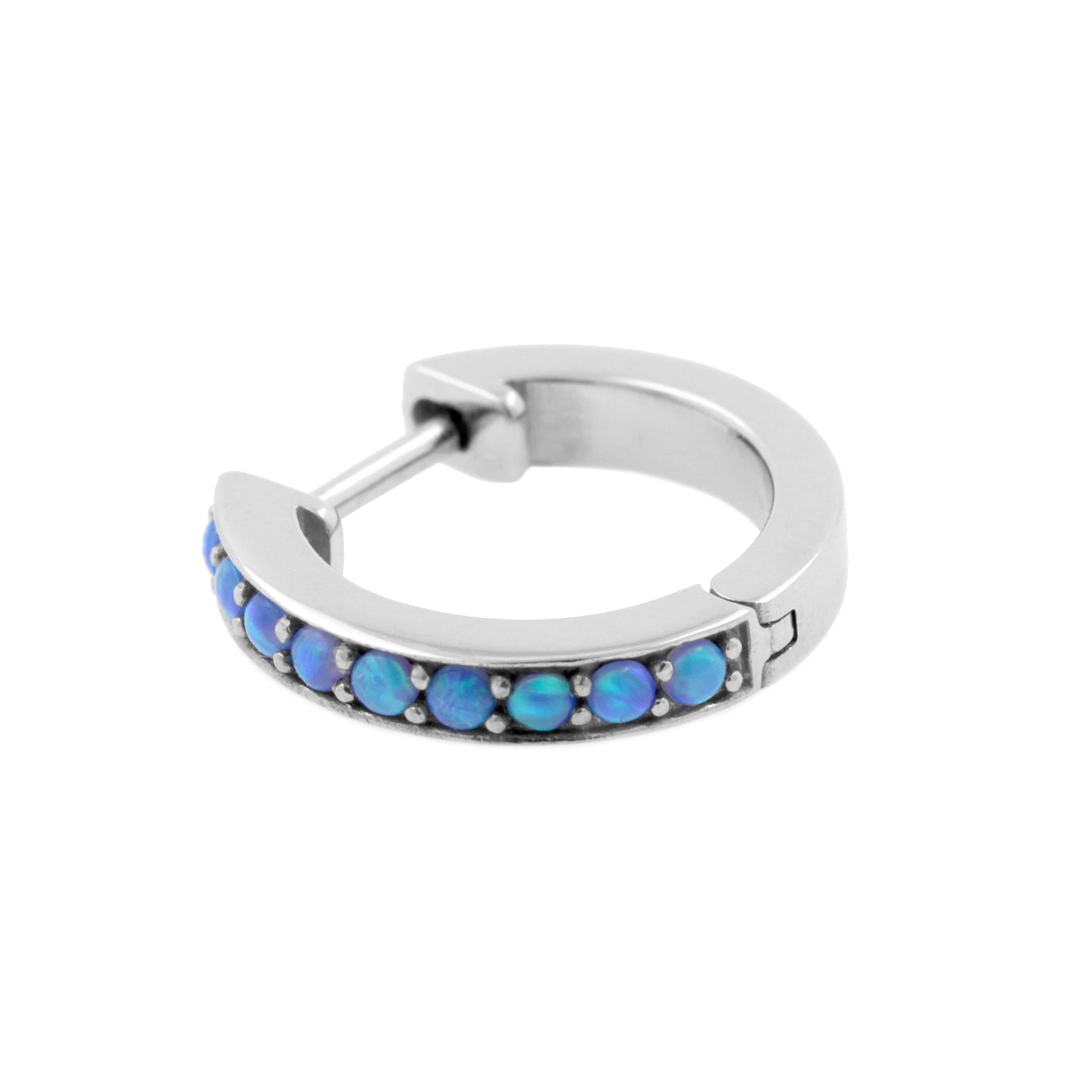 Surgical Steel Click Hoop Earrings With Opal Sapphire Blue Opal