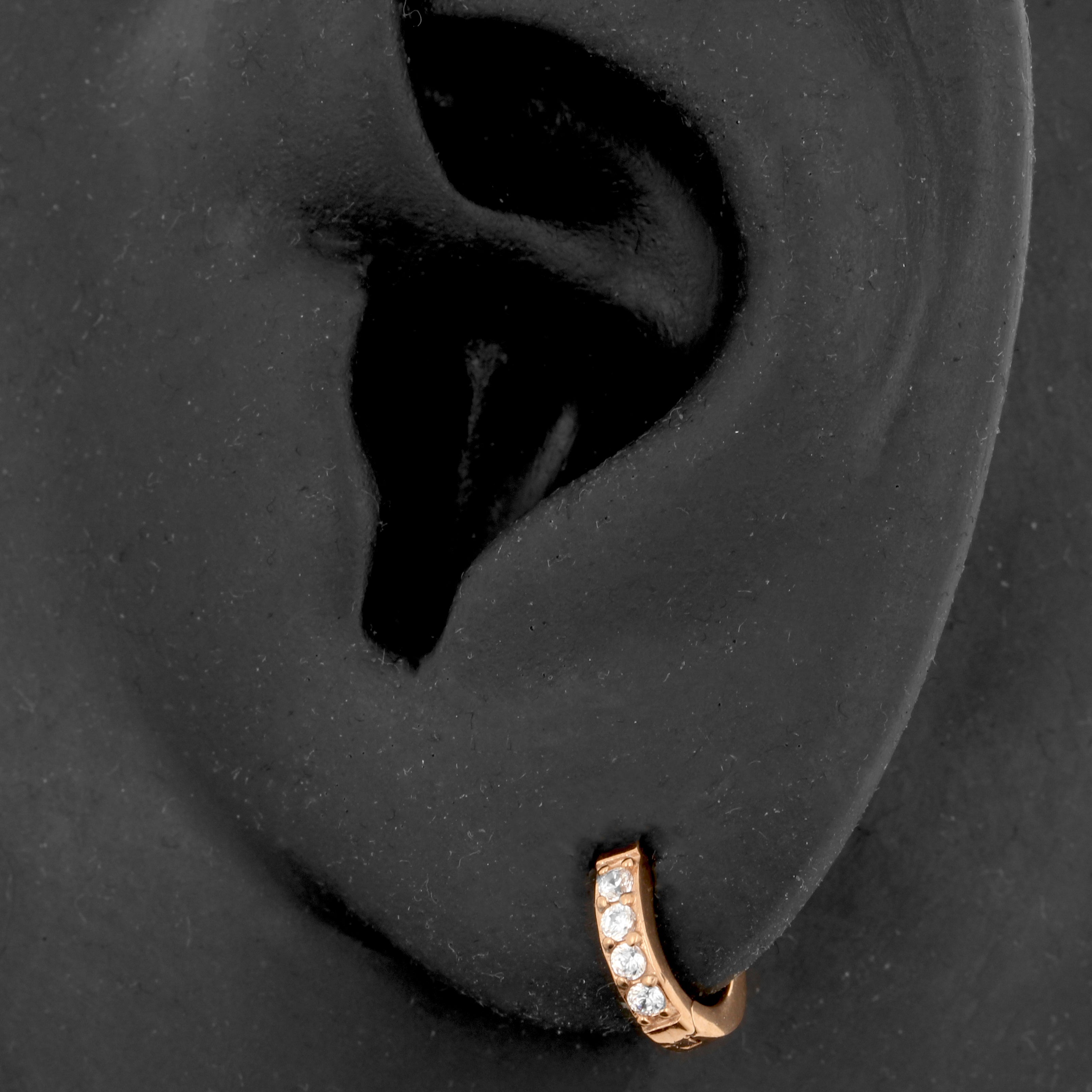Surgical Steel Click Hoop Earrings - Zirconia Rose Gold