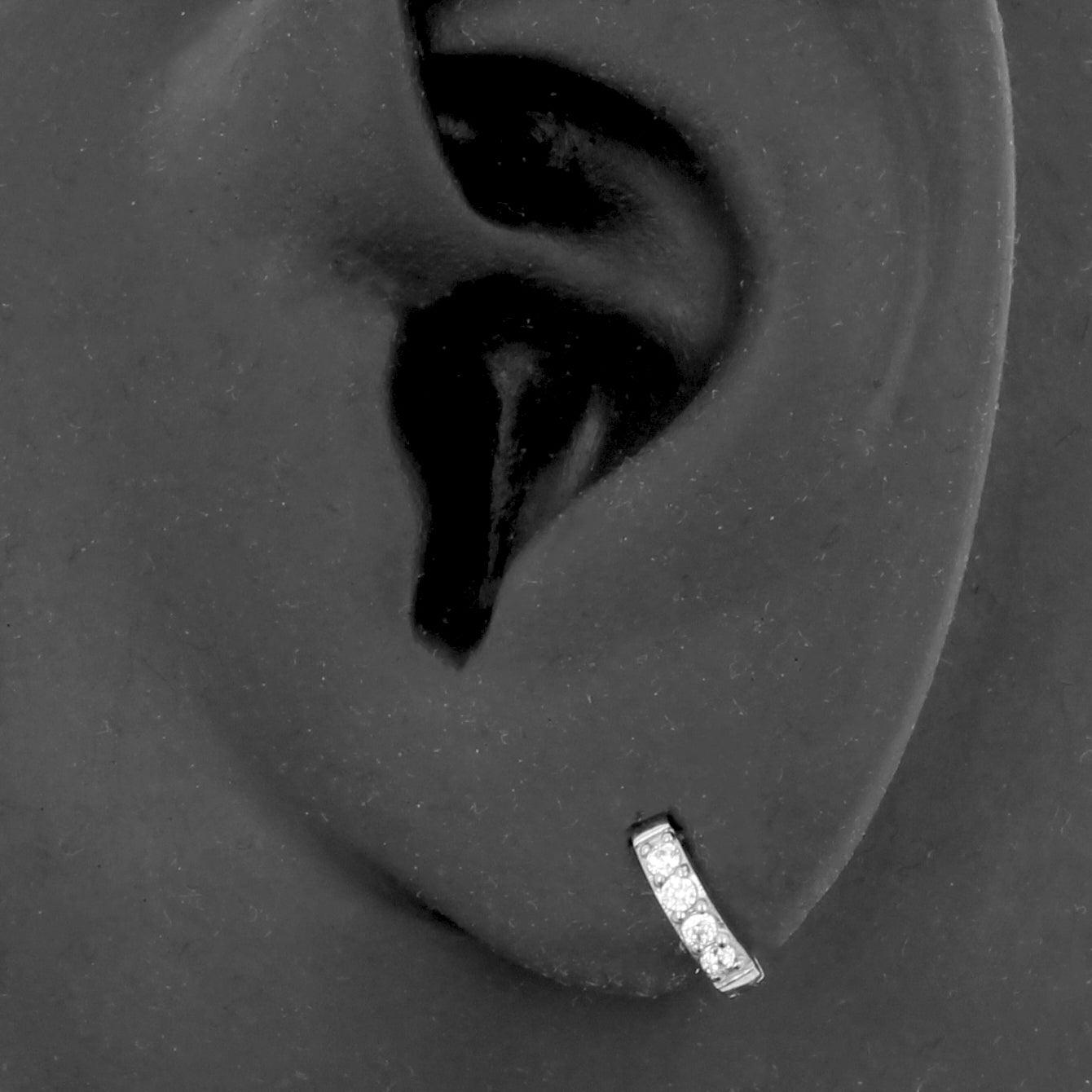 Surgical Steel Click Hoop Earrings - Zirconia Silver