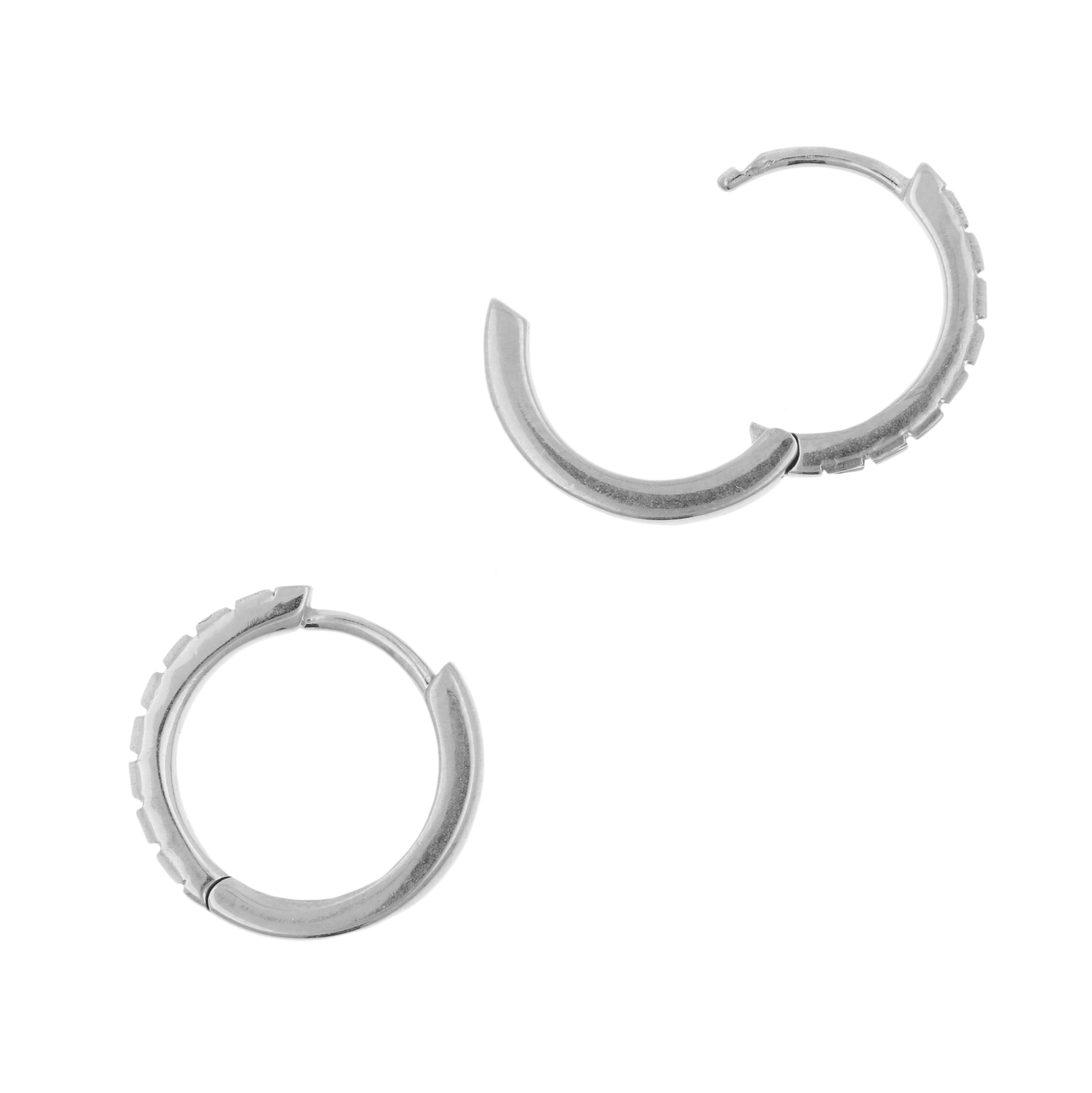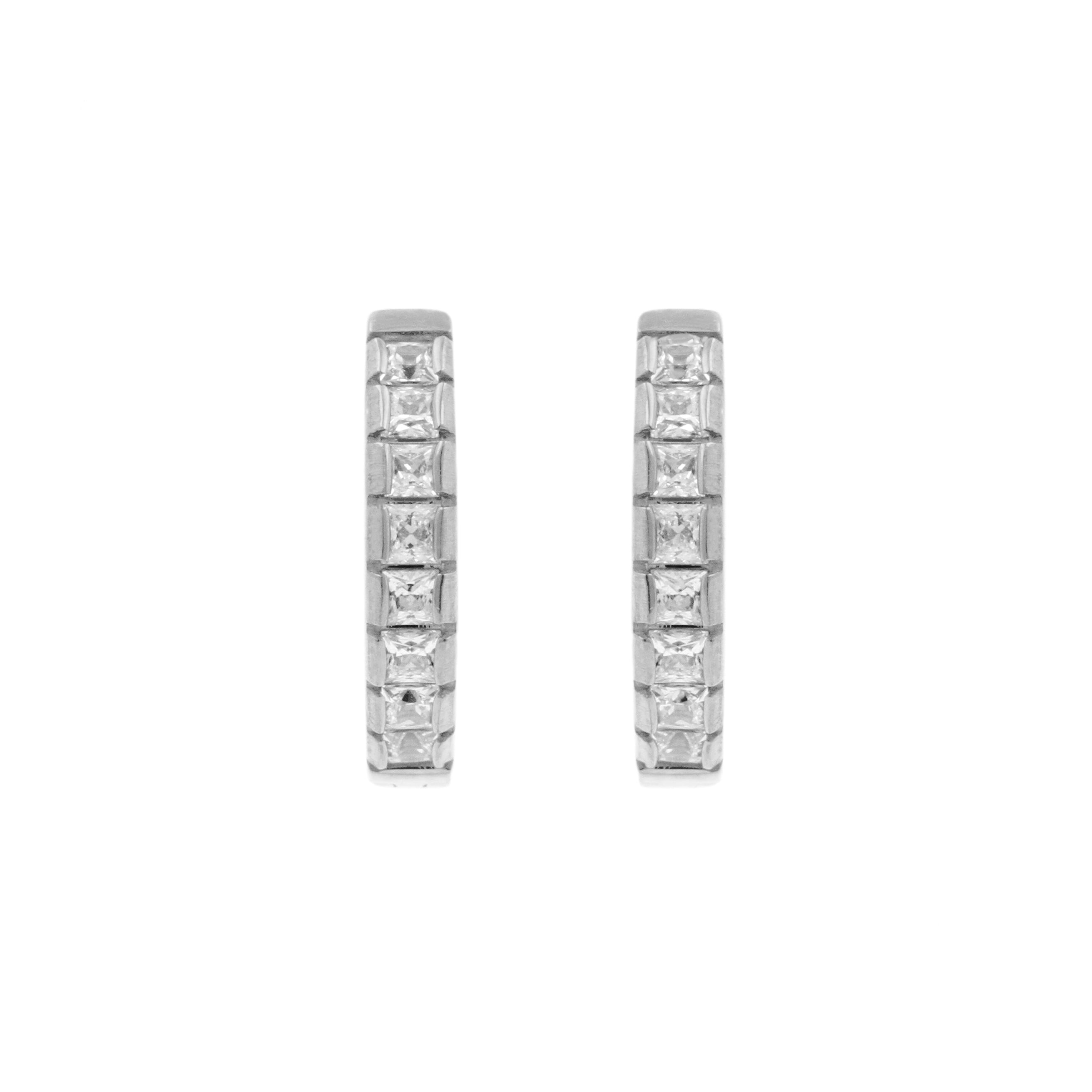 Surgical Steel Click Hoop Earrings - Zirconia Square - Silver