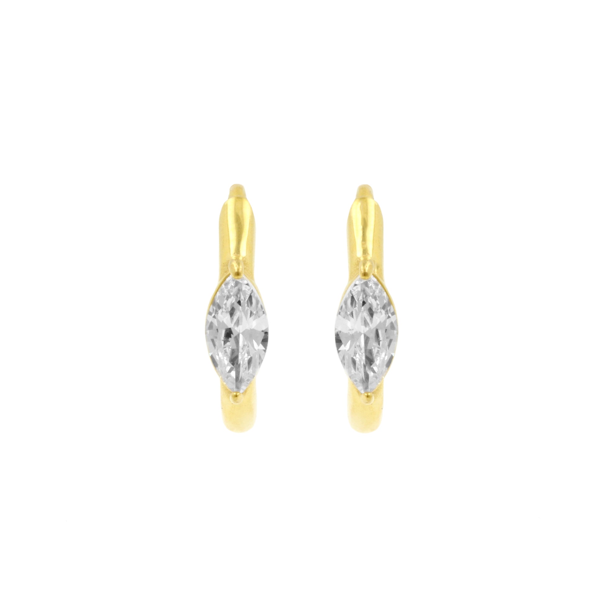Elevate your look with surgical steel click hoops in a refined gold tone, set with teardrop zirconia. Sleek, durable and sparkly — perfect on their own or stacked.