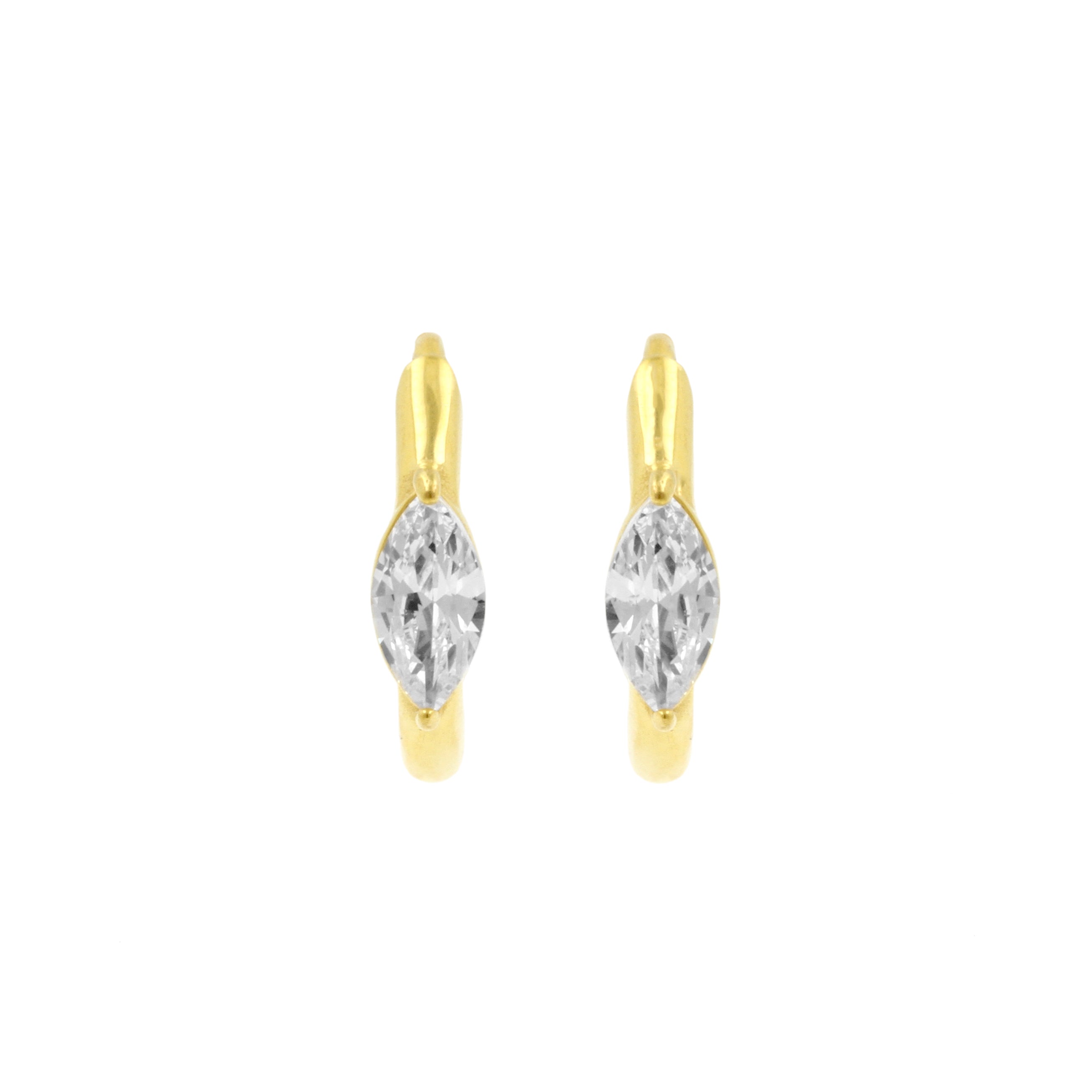 Surgical Steel Click Hoop Earrings - Zirconia Teardrop - Gold
