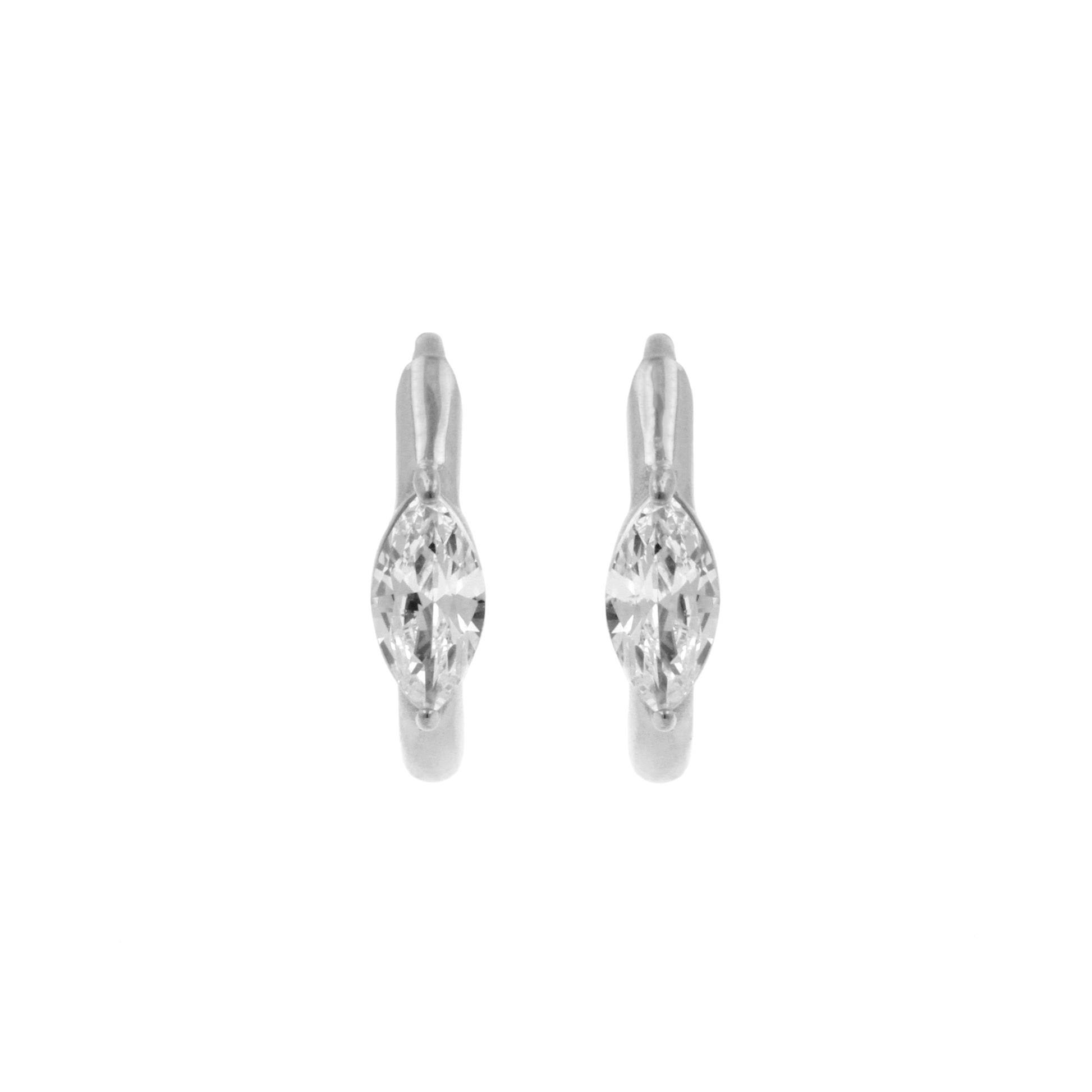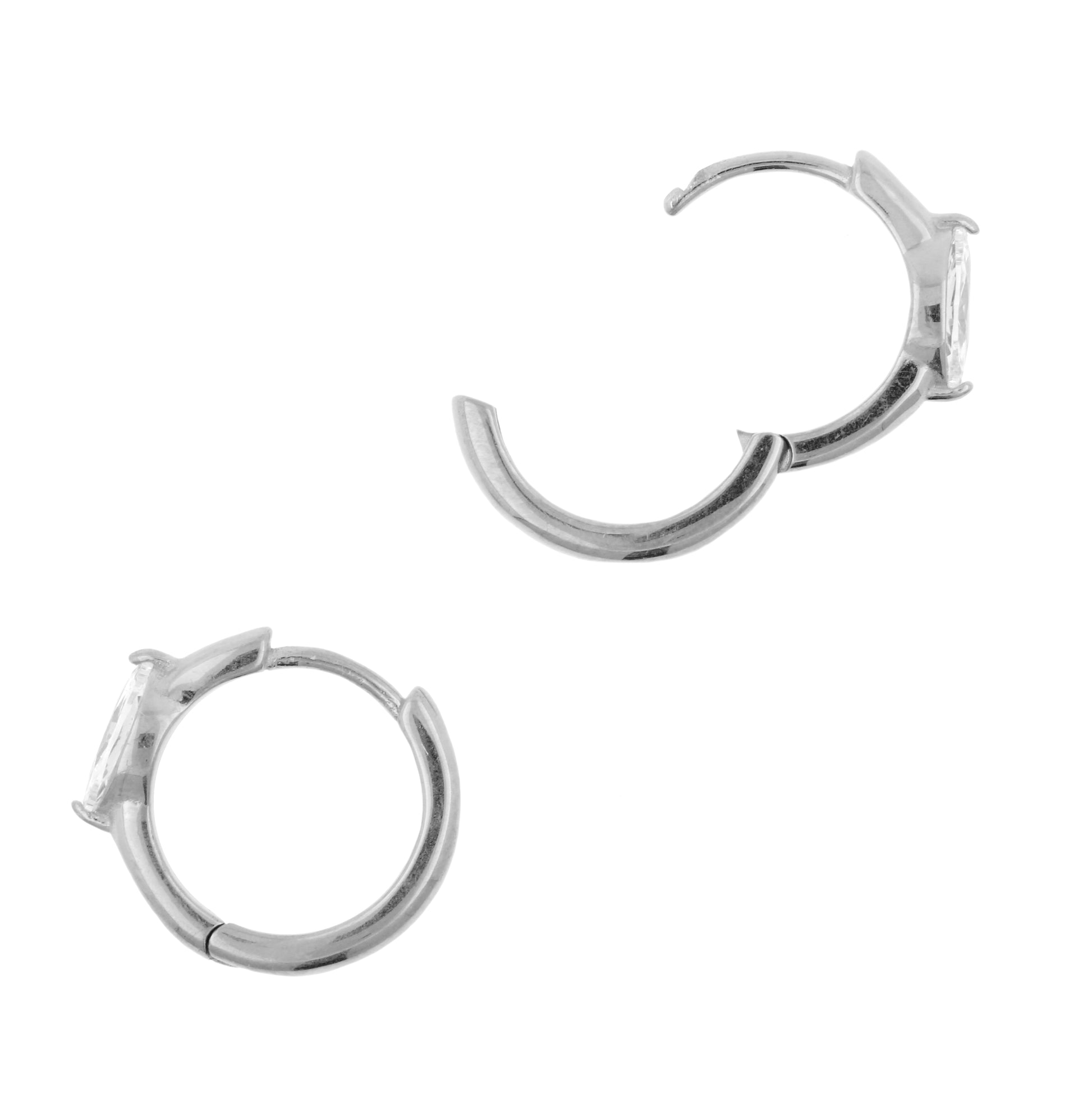 Surgical Steel Click Hoop Earrings - Zirconia Teardrop - Silver
