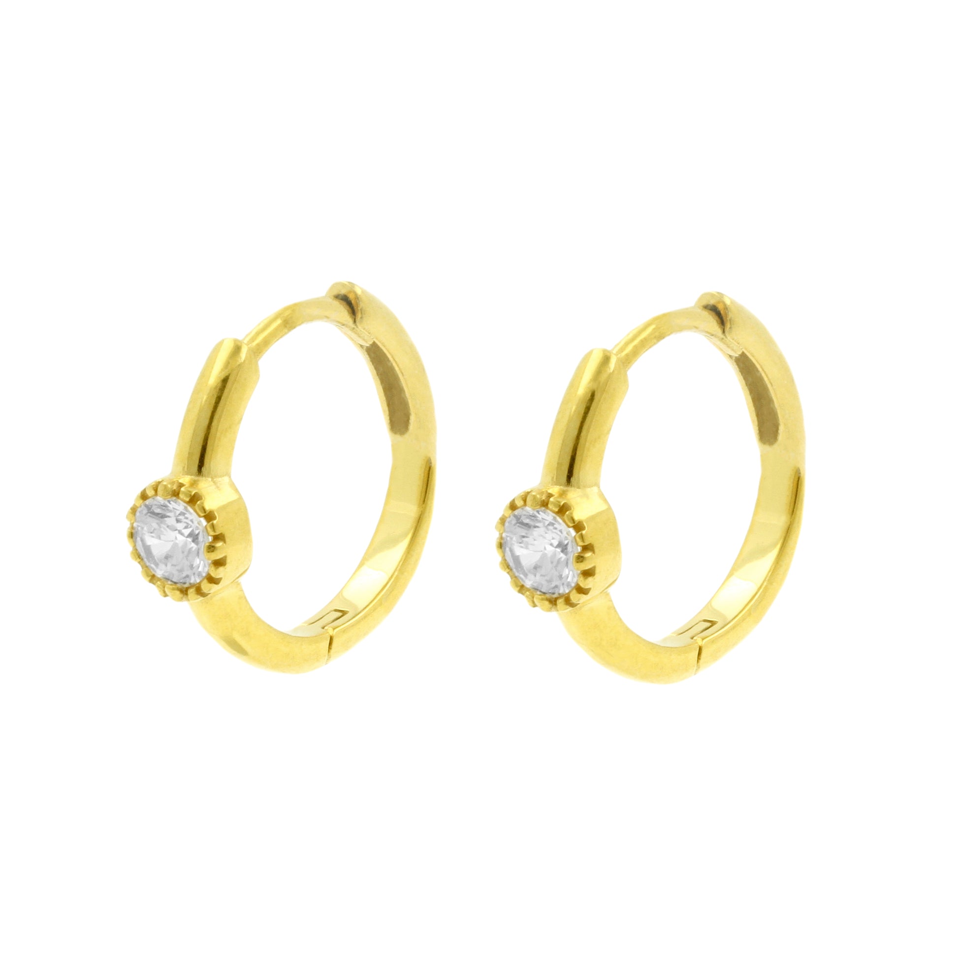 Surgical Steel Click Hoop Earrings - Zirconia Vintage - Gold