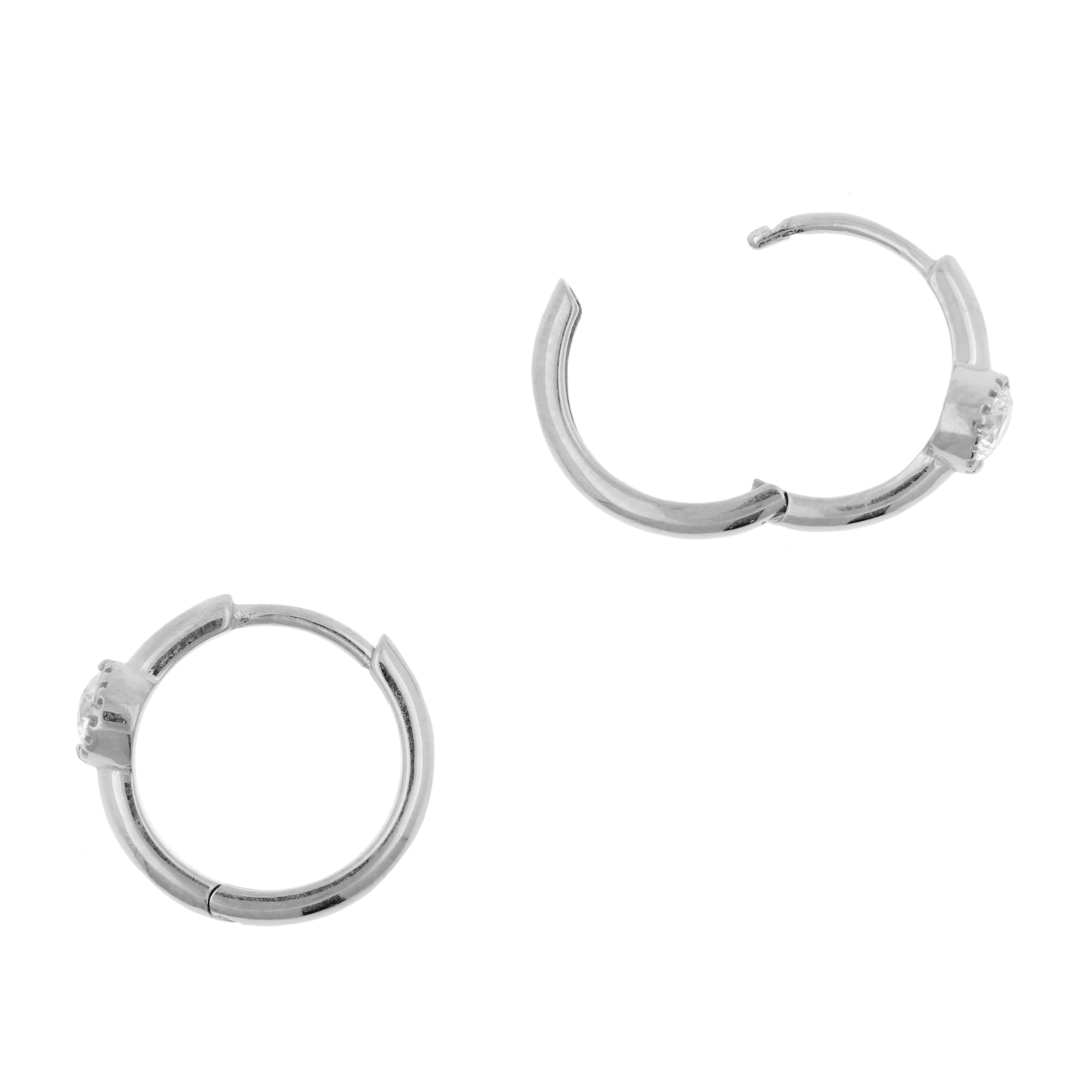 Surgical Steel Click Hoop Earrings - Zirconia Vintage - Silver