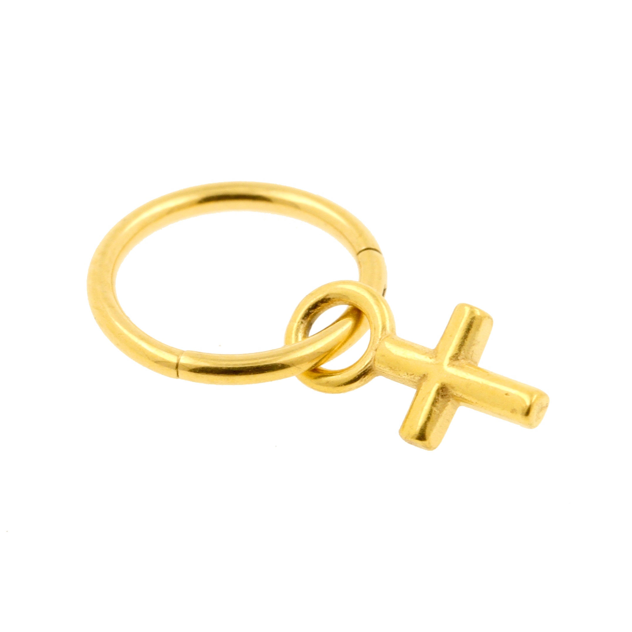 Surgical Steel Click Ring Charm - Cross Gold