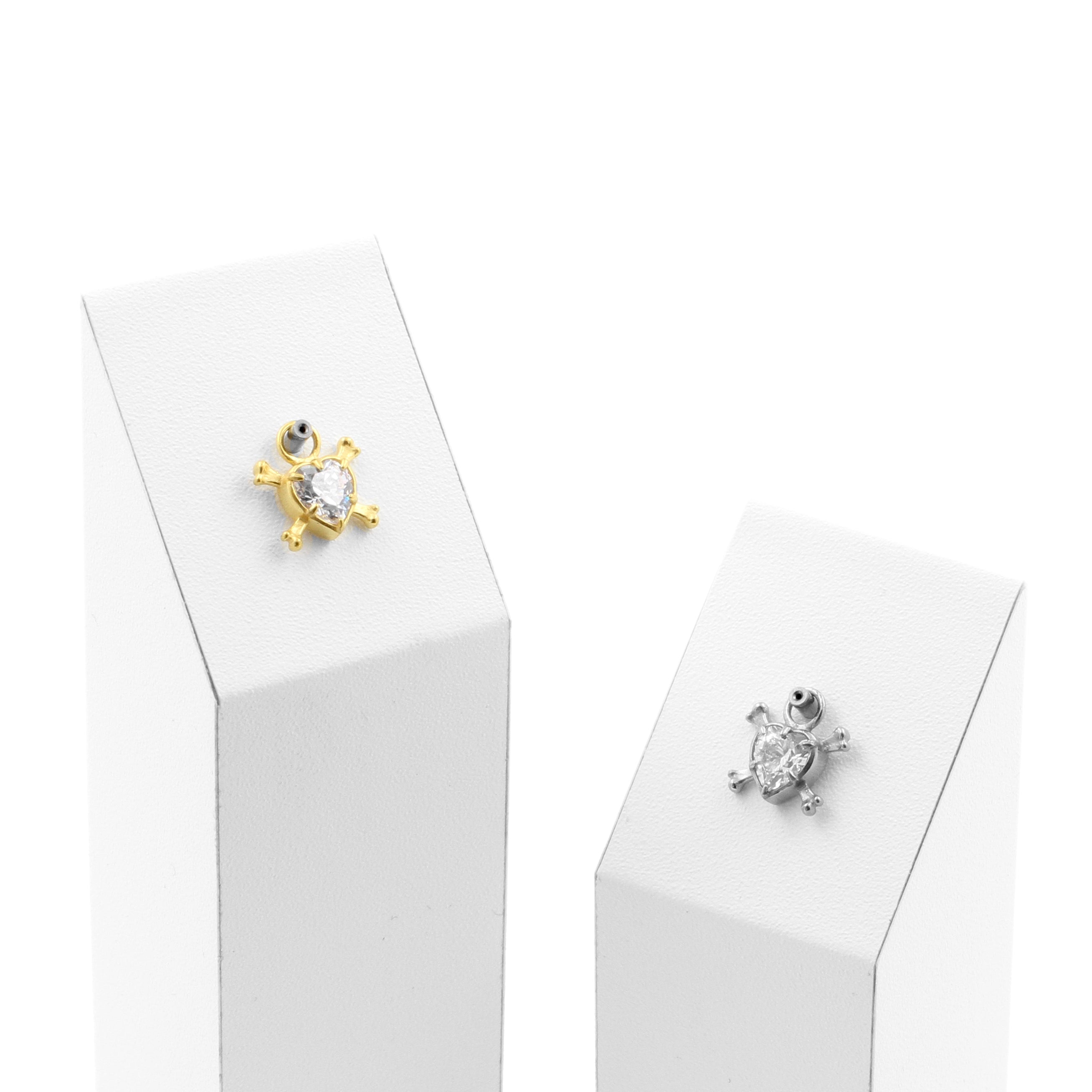 Surgical Steel Click Ring Charm - Zirconia Heart And Bones Silver