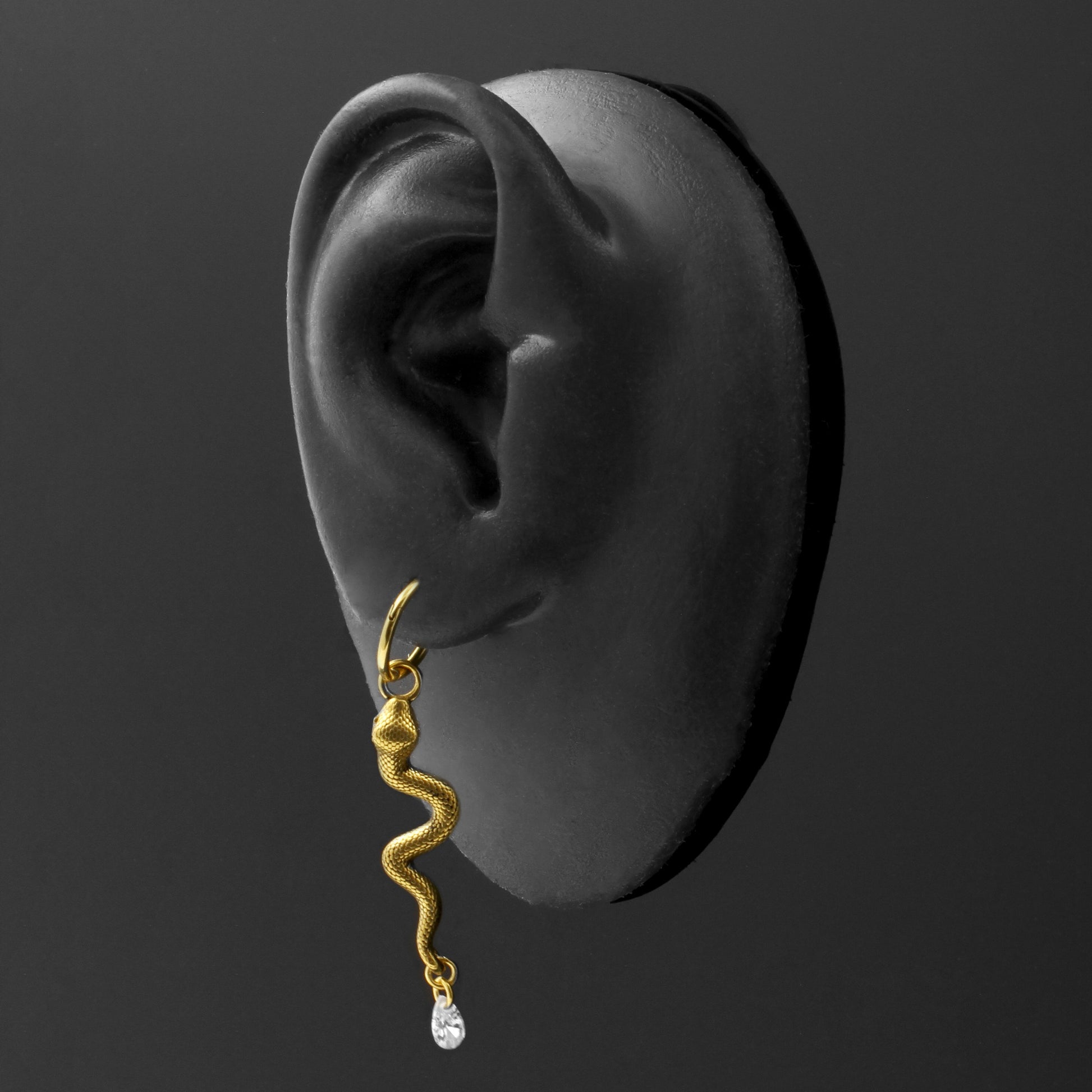 Surgical Steel Click Ring Charm - Zirconia Snake Right Gold