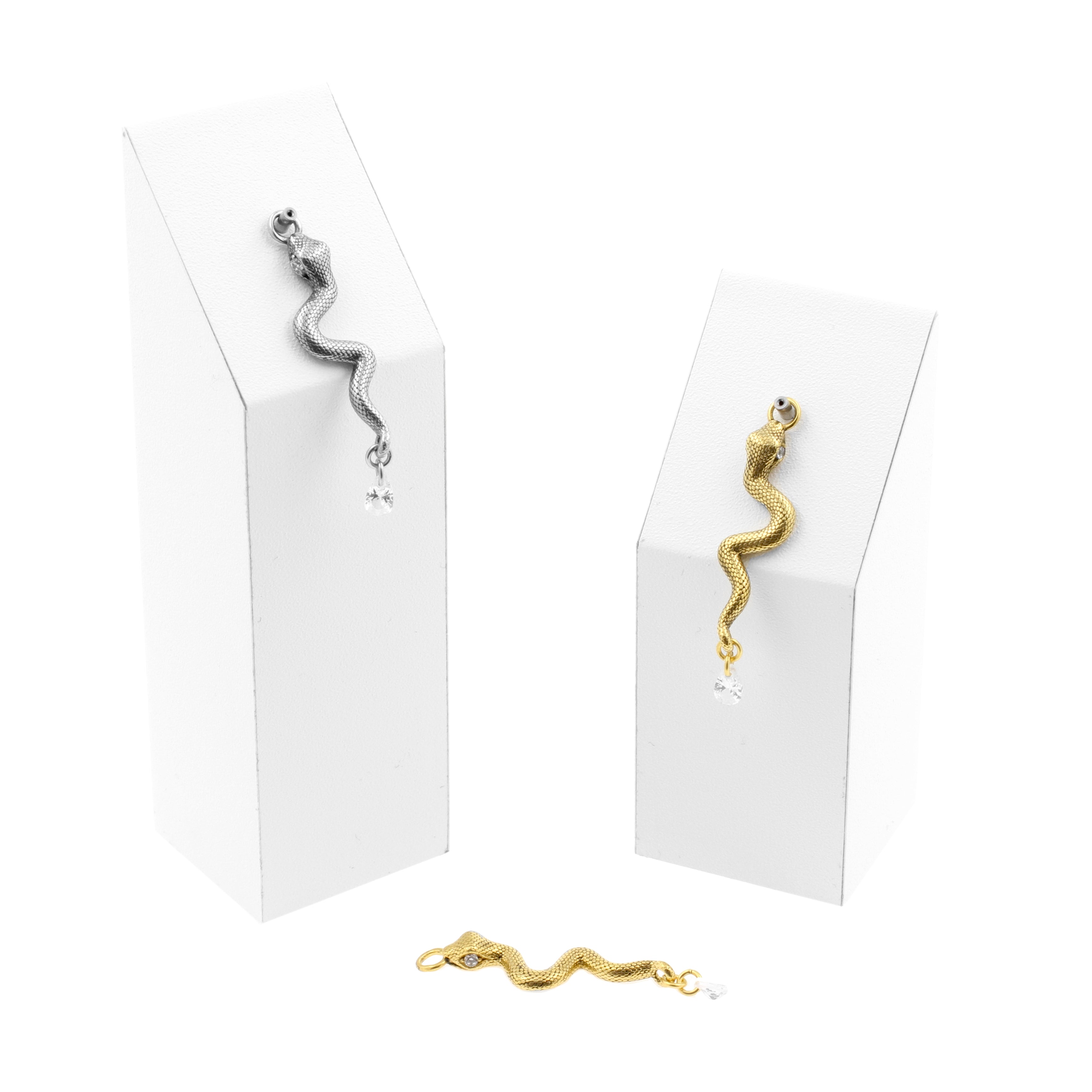 Surgical Steel Click Ring Charm - Zirconia Snake Right Silver
