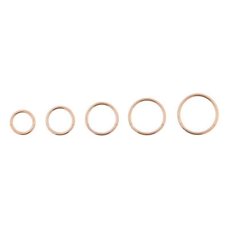 Pretty basics! The perfect piercing ring if you like the look of a smooth segment ring, but need something that's easy to use as well. The segment of this click ring is hinged and can easily be opened and closed. The closing mechanism is very easy to use and allows a smooth insertion into your piercings. Made of surgical steel and available in different colors and sizes!
