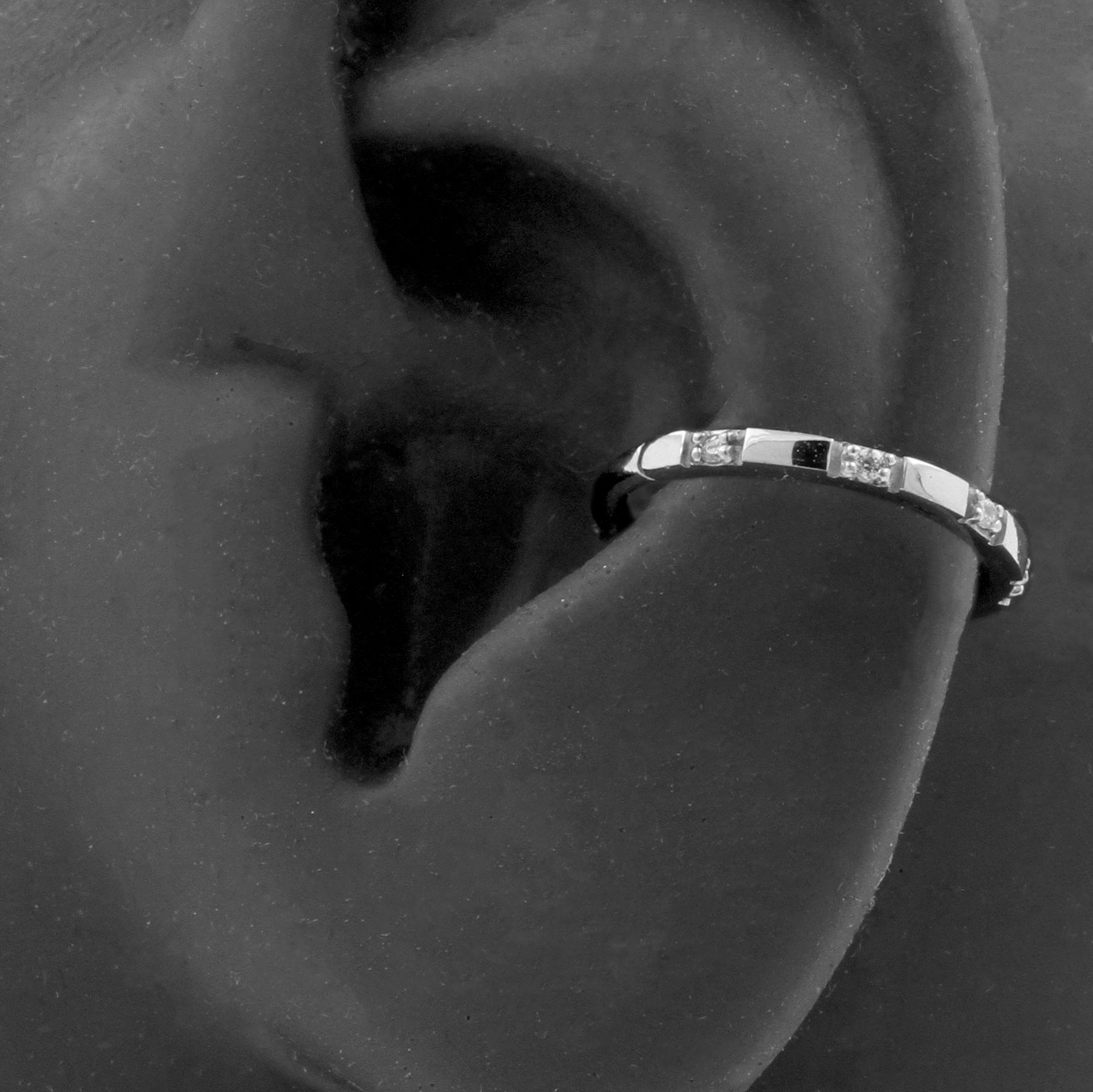 Surgical Steel Conch Clicker - Bar & Gems Silver