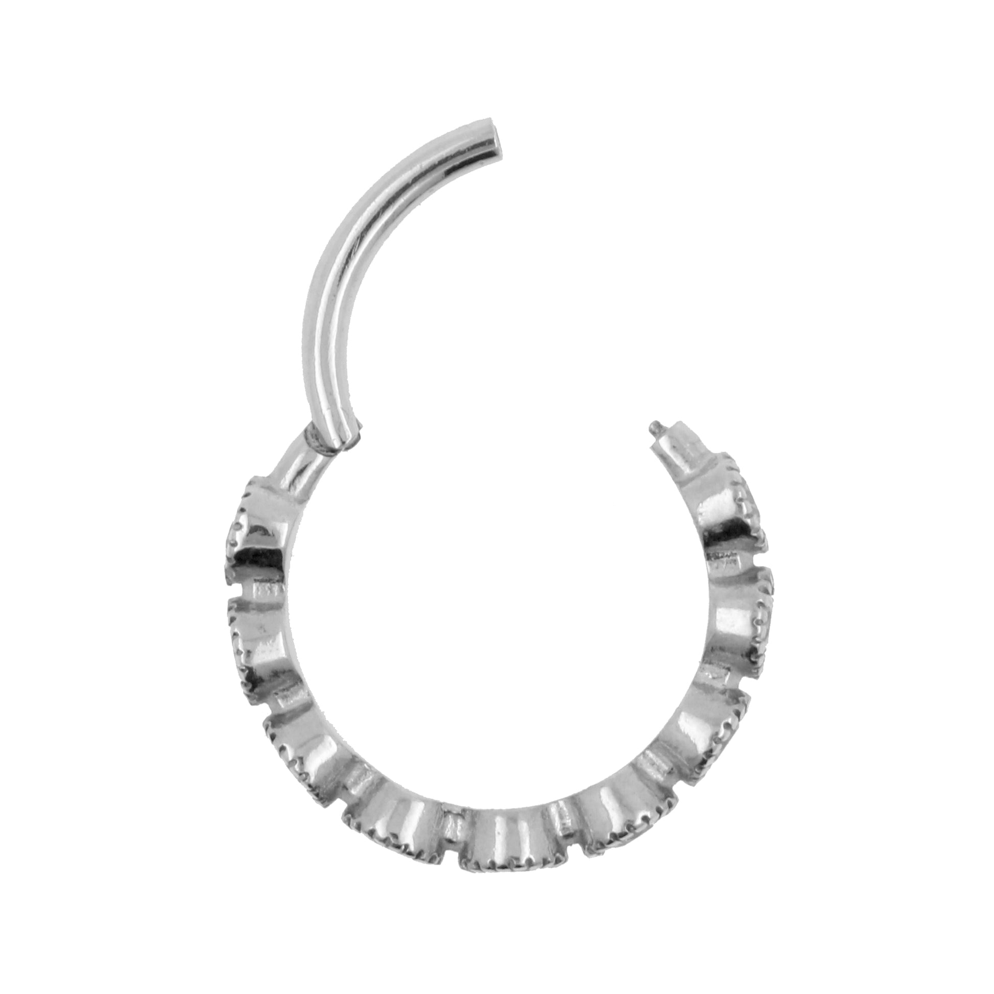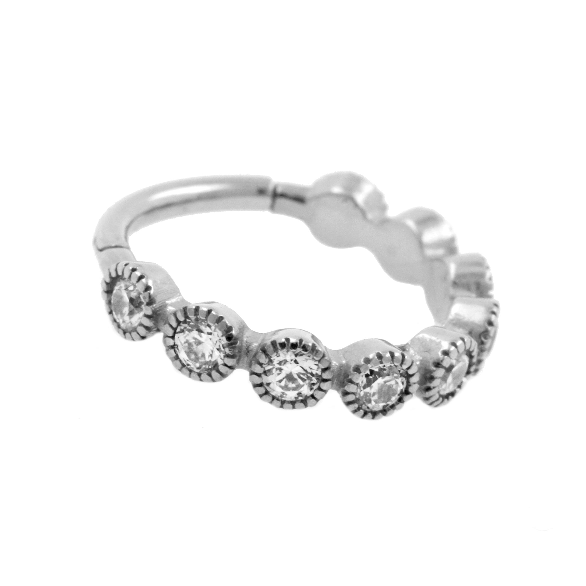 It all clicks with these amazing piercing click rings! Easy to use click ring made of surgical steel, set with beautiful zirconias. Comfortable and very easy to use. The segment of this click ring is hinged and can easily be opened and closed, which allows a smooth insertion into your piercings. Perfect for all kinds of piercings, but especially for conch piercings.