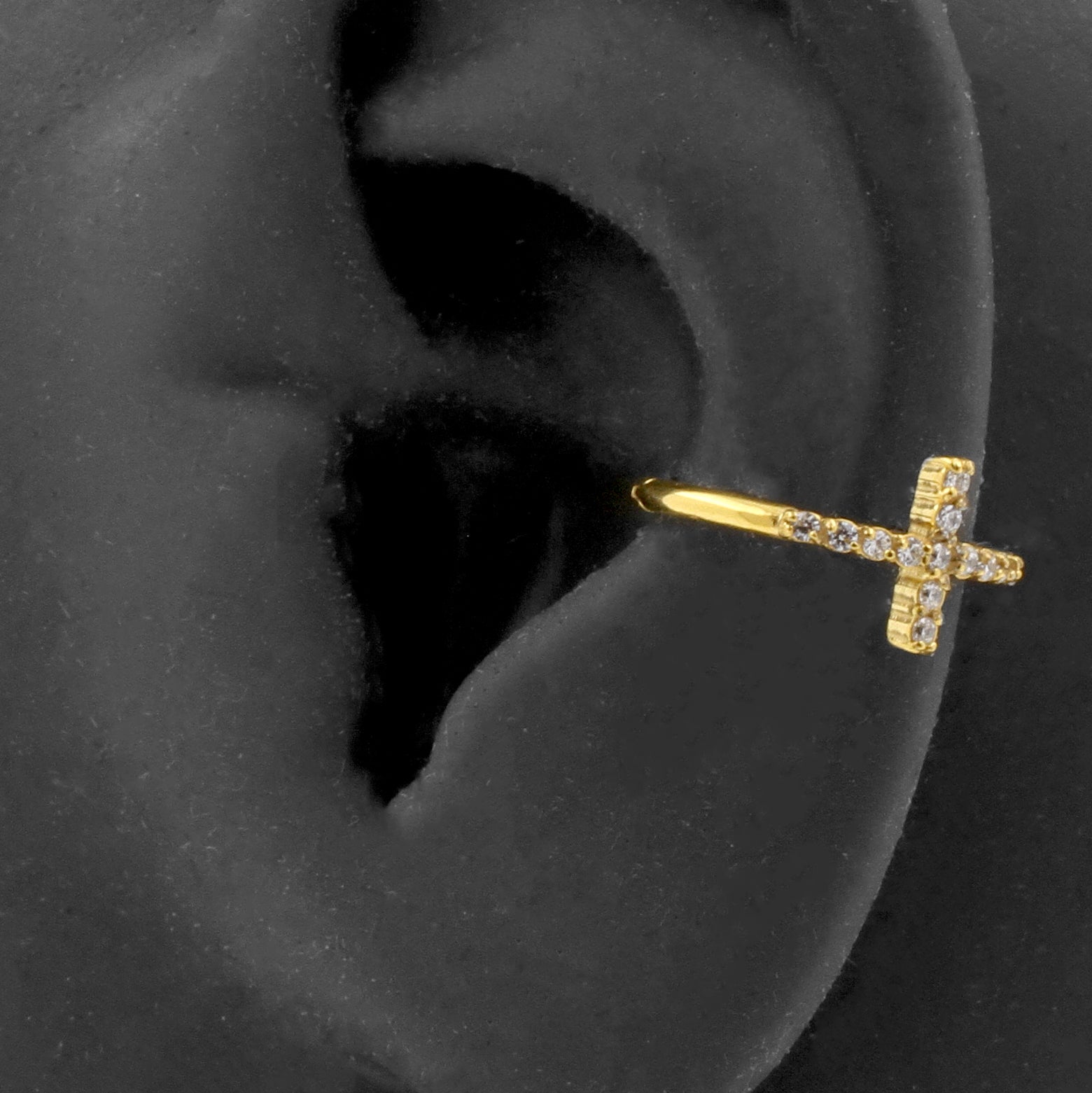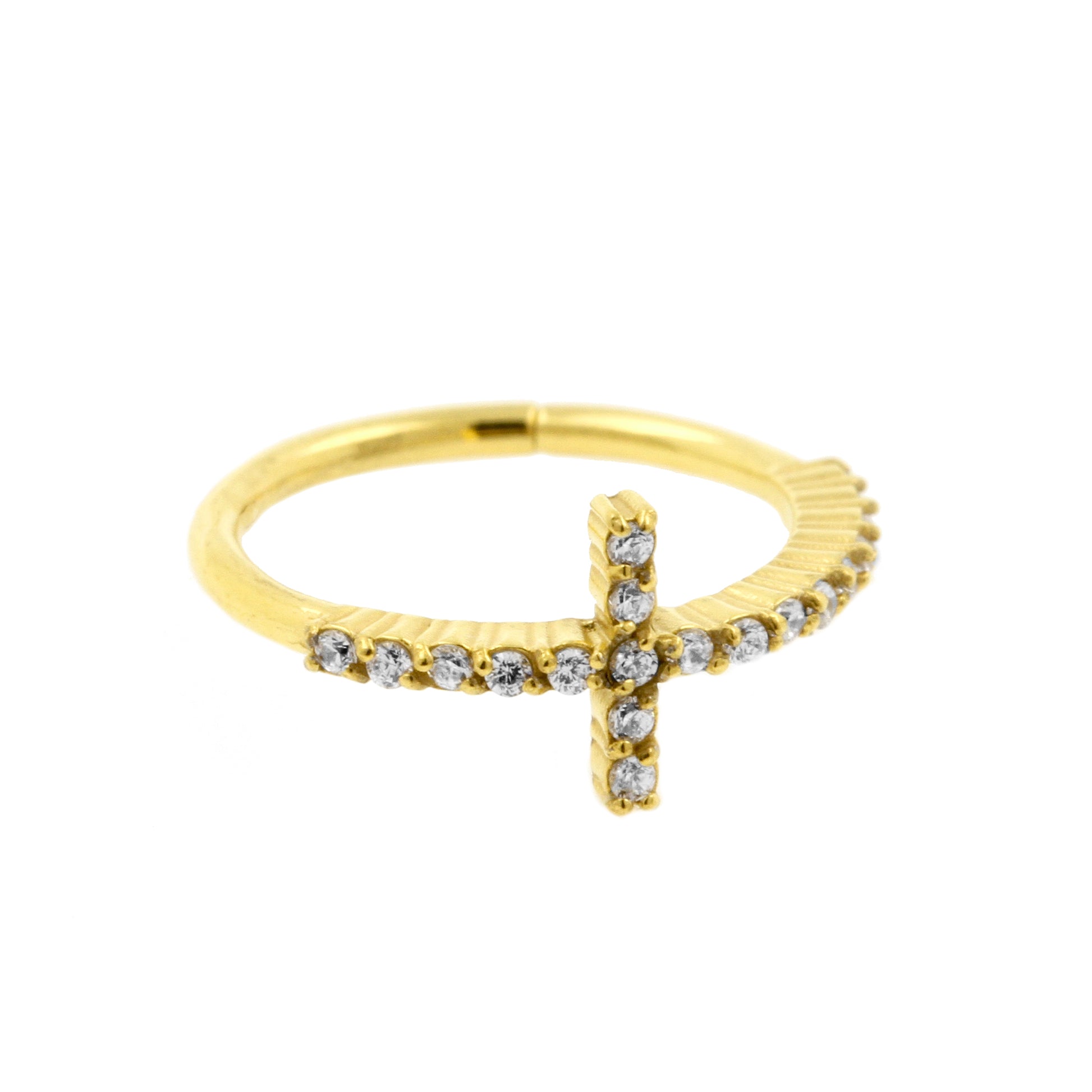 Surgical Steel Conch Clicker - Zirconia Cross Gold