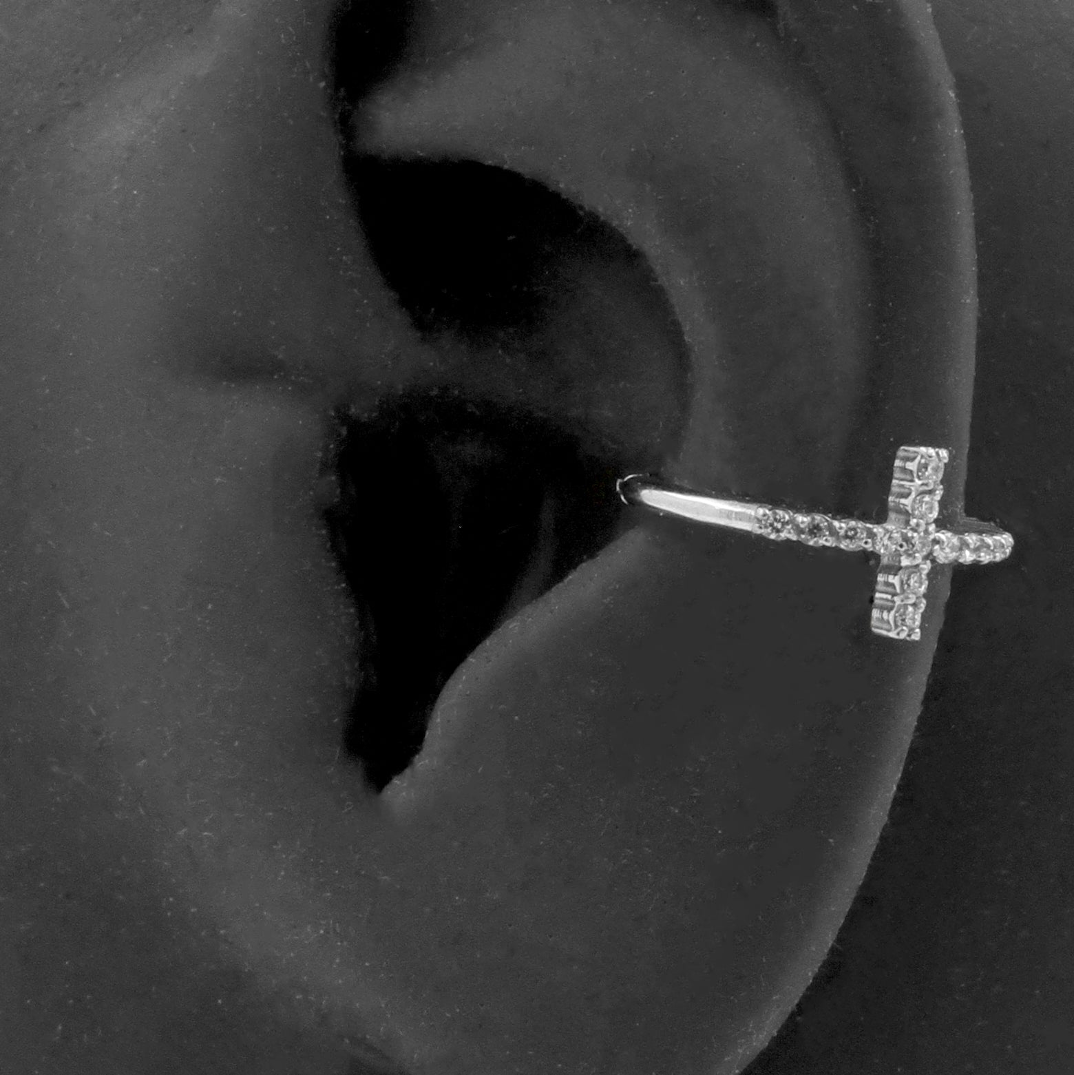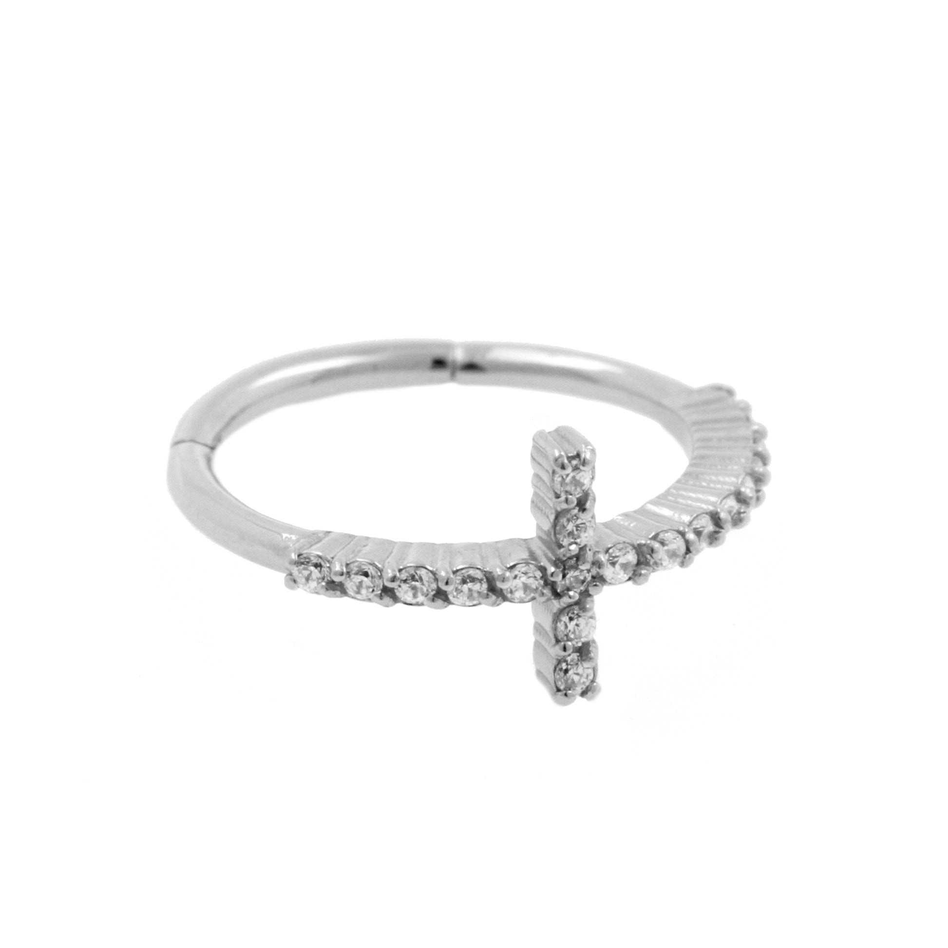 Surgical Steel Conch Clicker - Zirconia Cross Silver