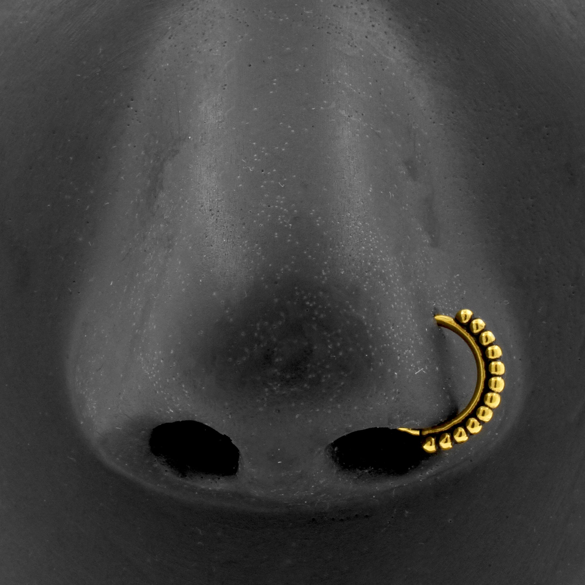Give your piercings an amazing look with these gorgeous rings! These beautiful continuous rings are made of pliable surgical steel. The steel has been annealed, making it easier to open and close these rings by hand. The rings feature a lovely, dotted design with rounded ends for easy insertion. Open and close the ring by bending the ends slightly sideways, just enough to insert your piercings. After insertion, close the rings by bending in the opposite direction.