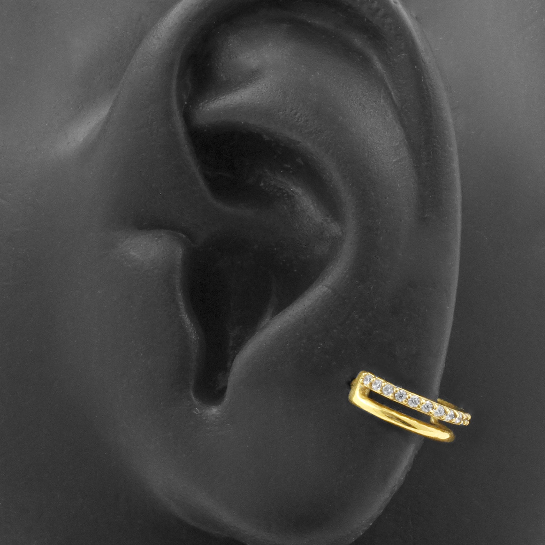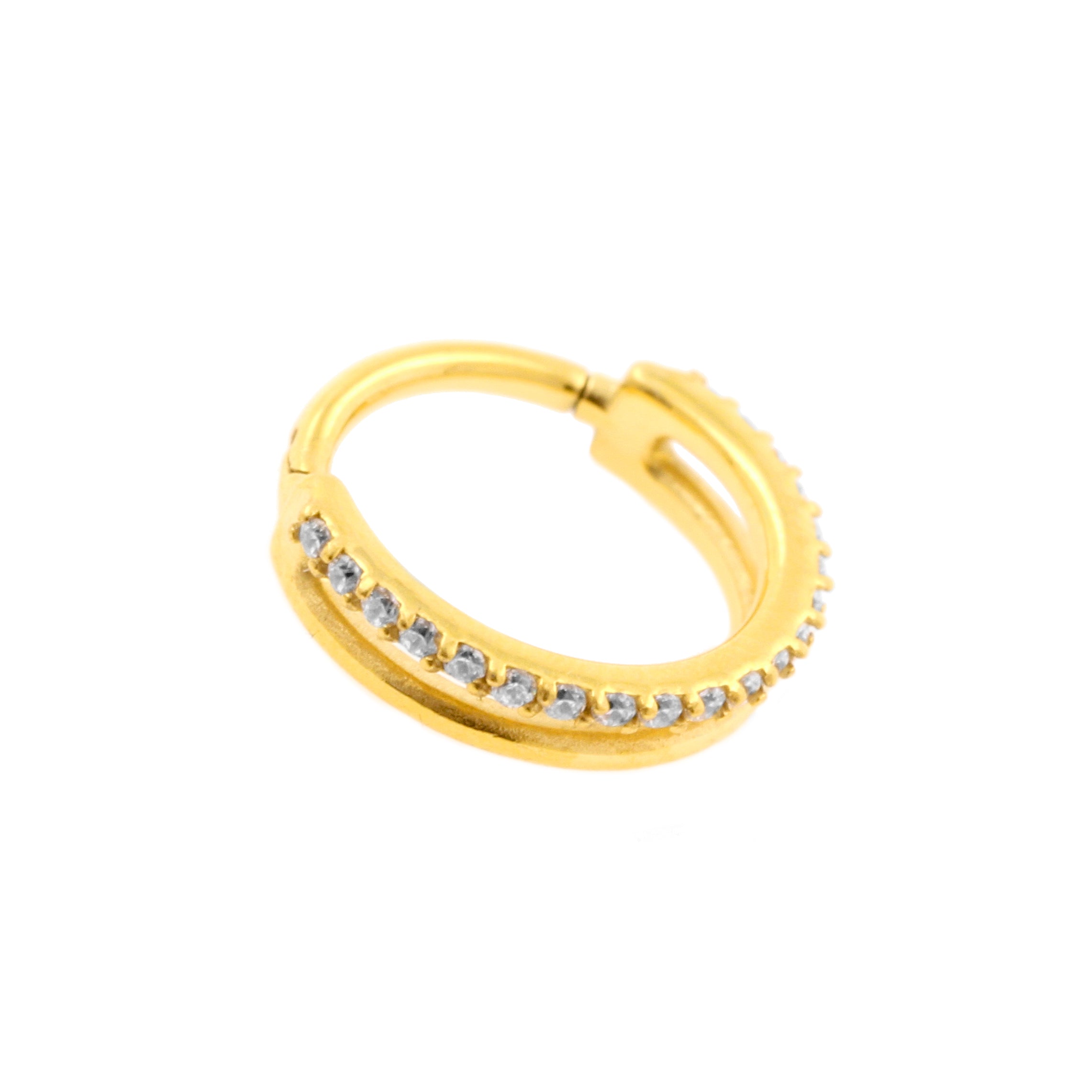 - Made of surgical steel with gold P.V.D. coating and set with premium zirconia