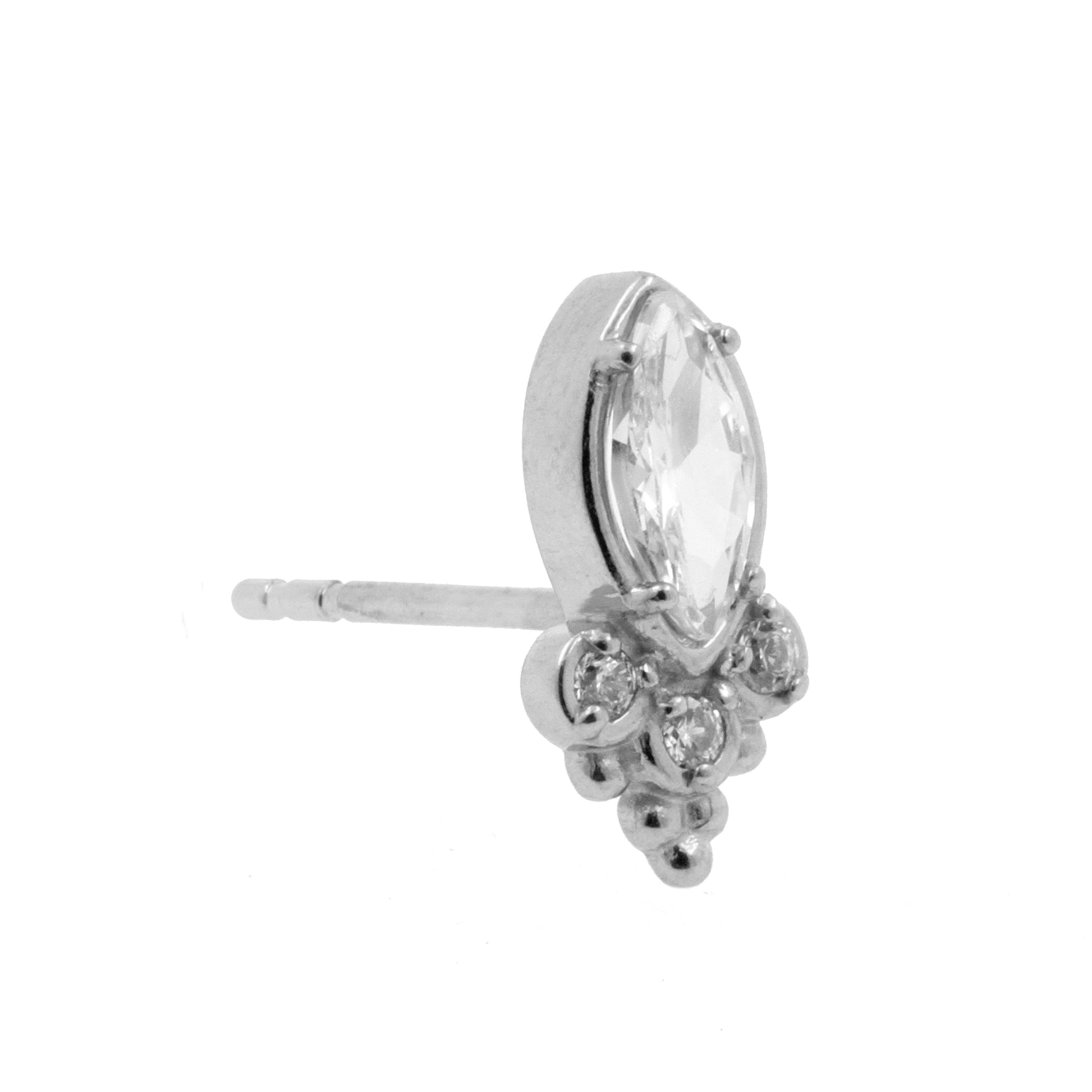 Surgical Steel Ear Studs With Marquise Zirconia And Trinity Dots Silver