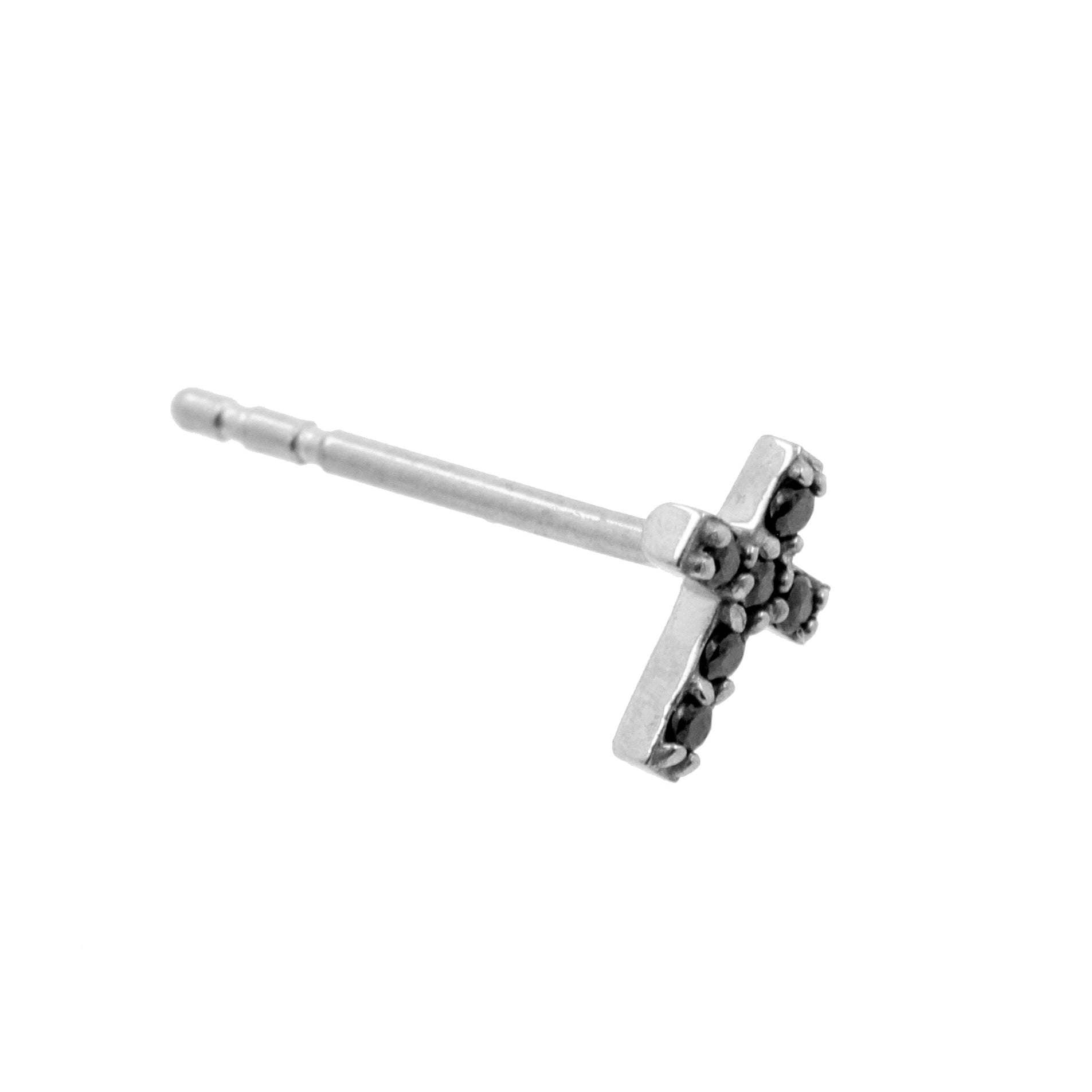 Surgical Steel Ear Studs - Zirconia Cross Black