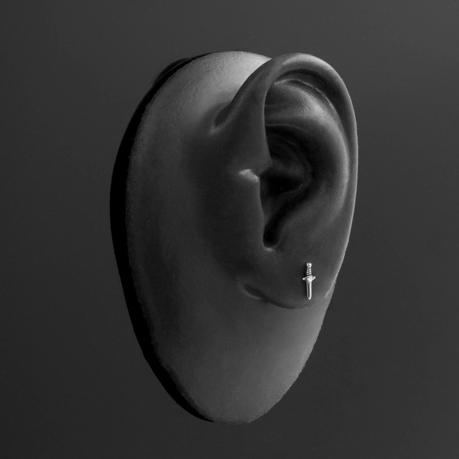 Surgical Steel Ear Studs - Zirconia Dagger Silver