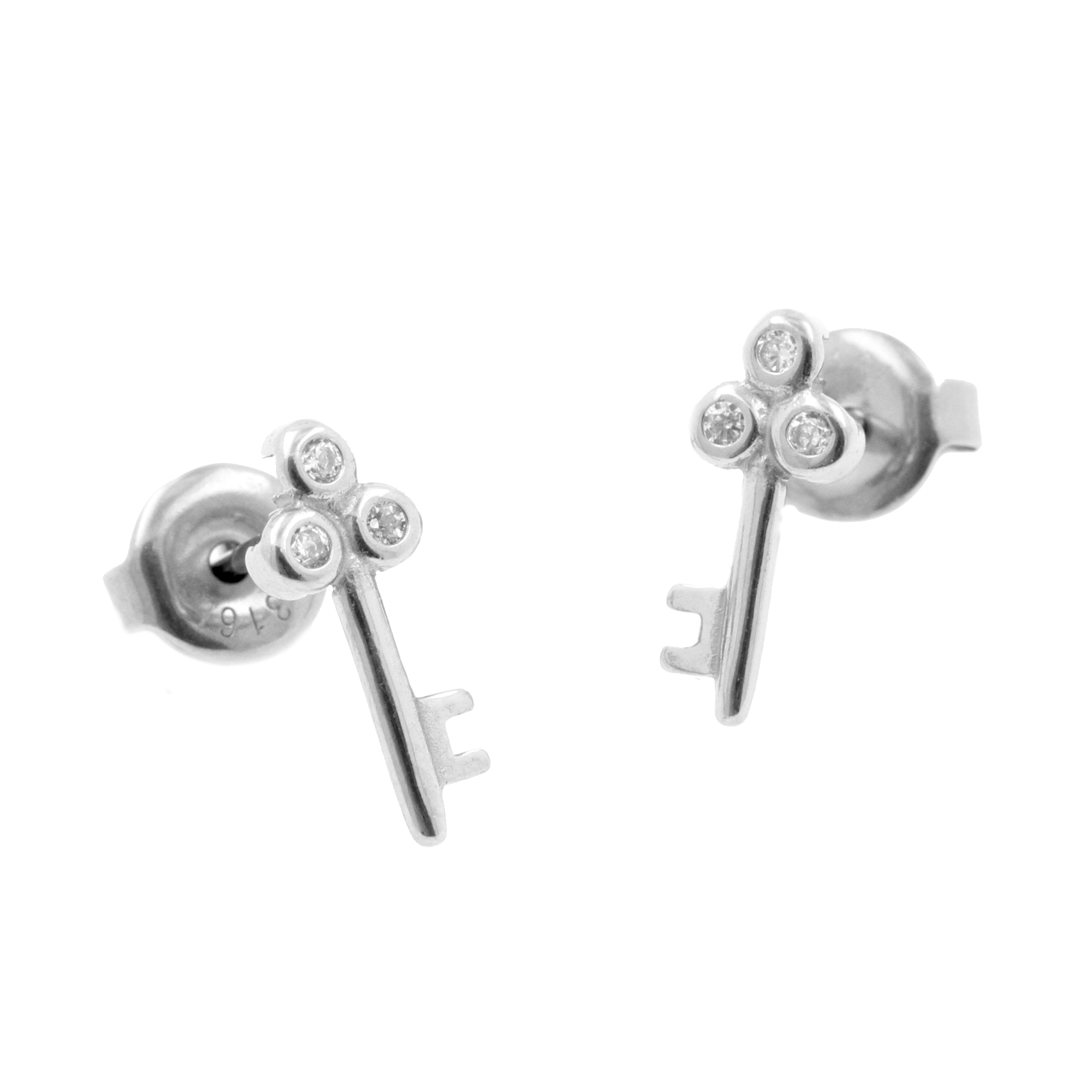 Surgical Steel Ear Studs - Zirconia Key Silver