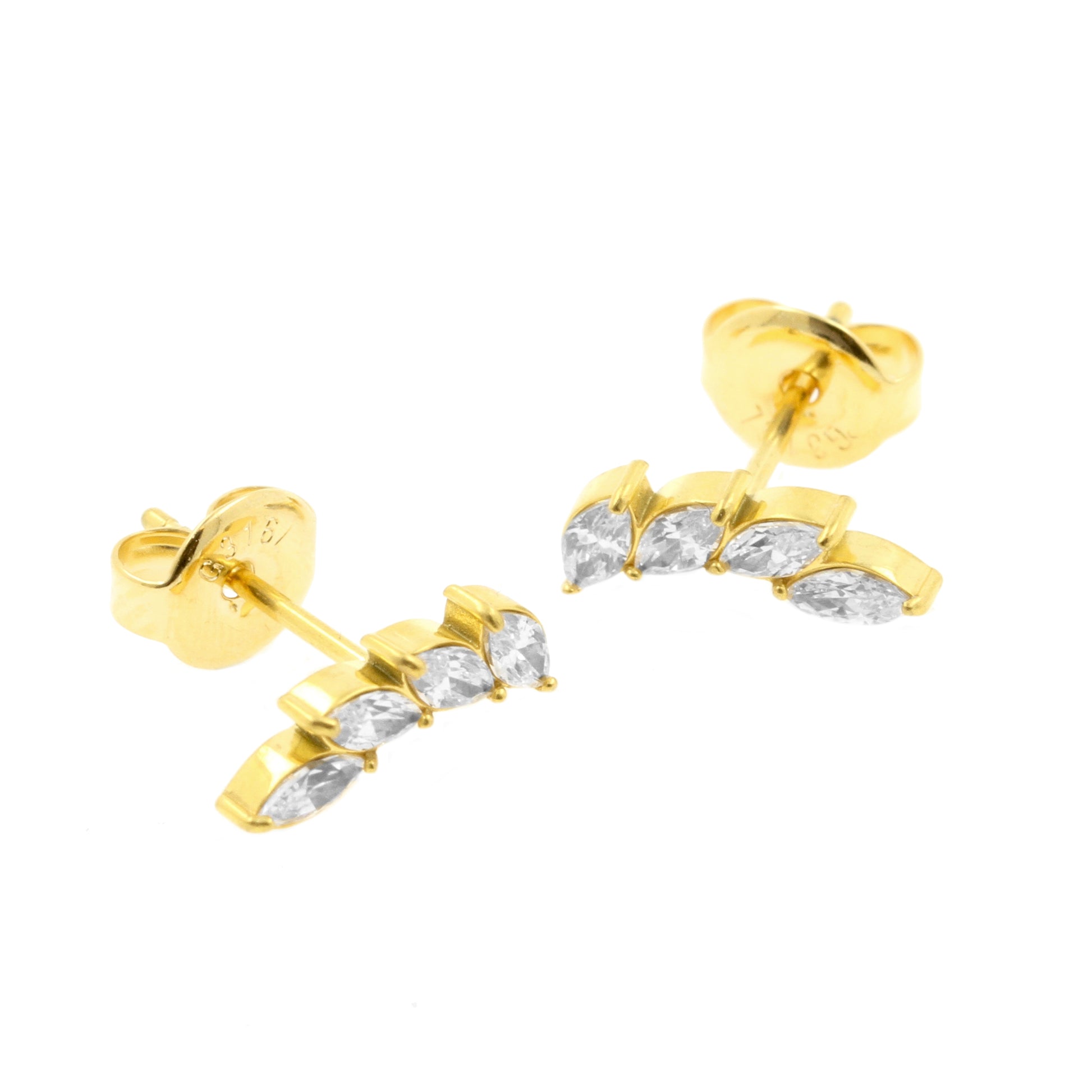 Surgical Steel Ear Studs - Zirconia Wing Gold