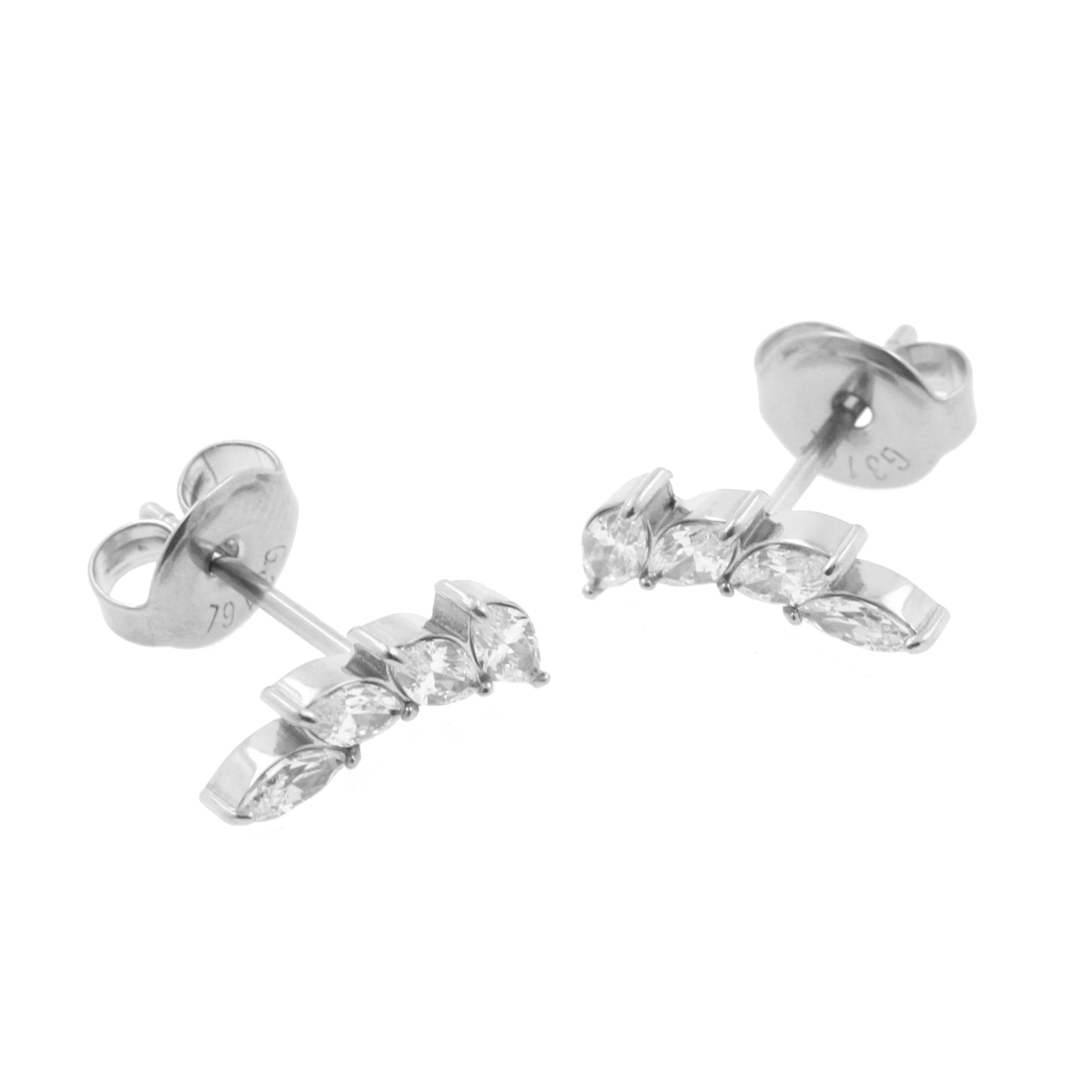 Surgical Steel Ear Studs - Zirconia Wing Silver