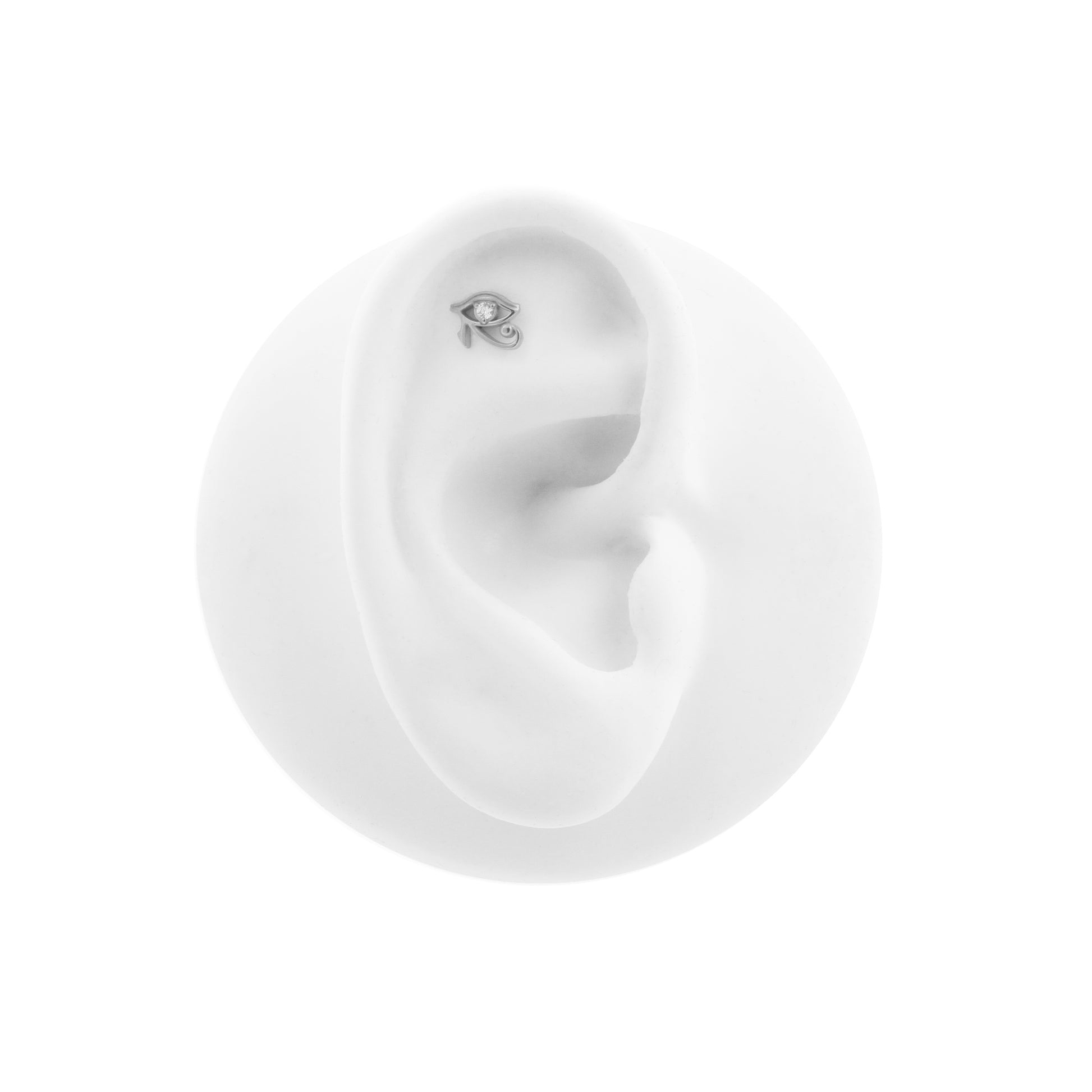 Surgical Steel Eye of Horus Top - Silver instantly adds a stylish touch to your piercing. This Threadless Top is made of Surgical Steel. The threadless system allows you to easily combine this top with all our bars, which we call Threadless Base, for a perfect fit and ultimate comfort.