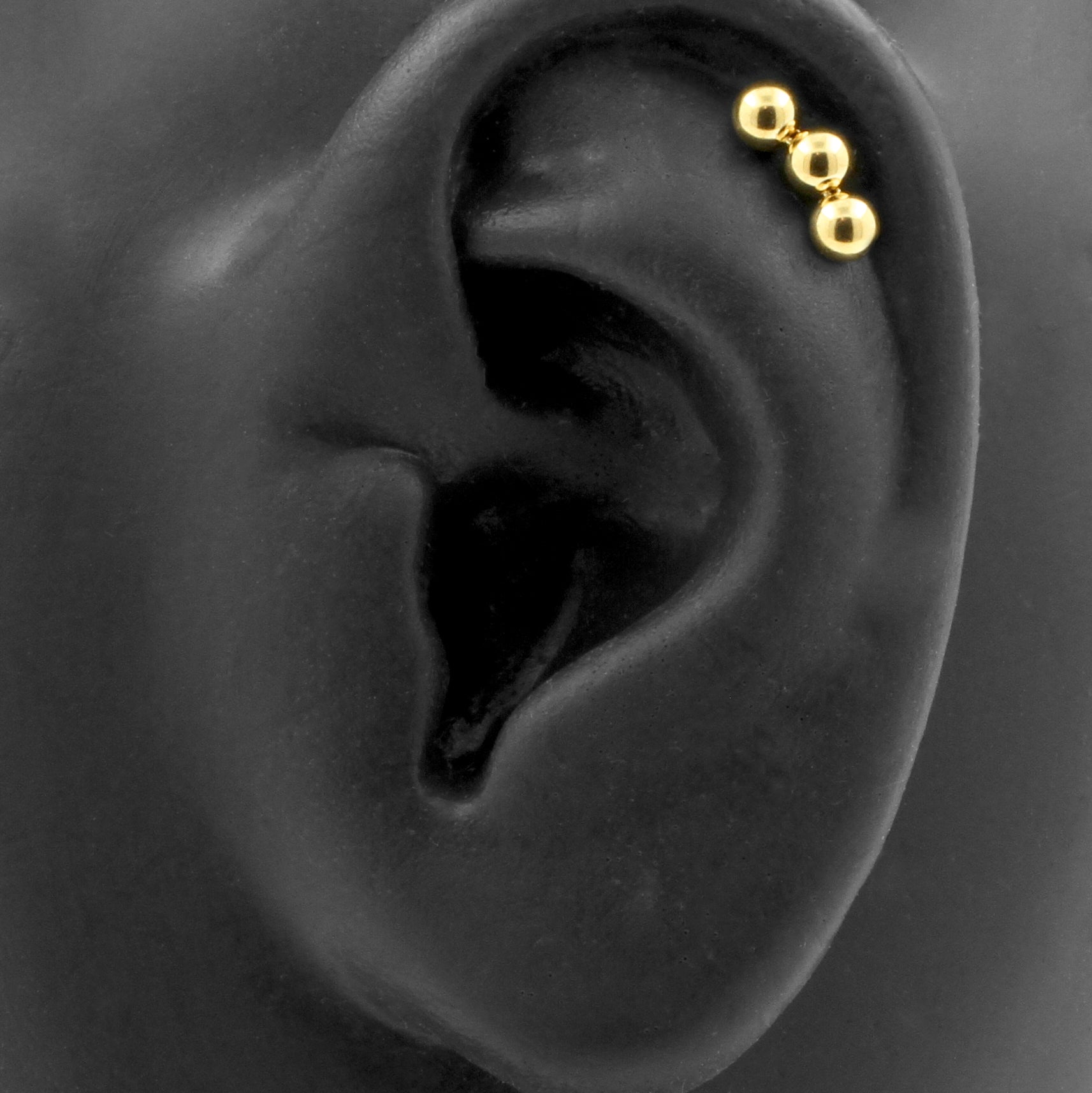 Surgical Steel Helix Barbell - Triple Dots 3 mm Gold