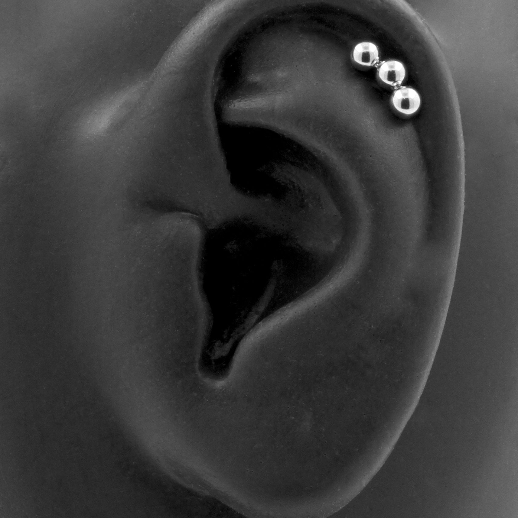 Surgical Steel Helix Barbell - Triple Dots 3 mm Silver